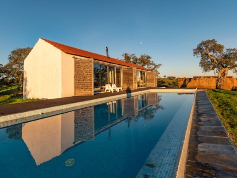Located in the interior of Serra de Grandola, this property offers a panoramic view of the south mountains of Alentejo, providing a unique and peaceful environment. Built in 2012, the villa stands out on a 6.9 hectares plot of land, composed by three distinct buildings, each one designed to provide comfort and intimacy. The main house, with 90 sqm, comprises a kitchenette and two suites equipped with salamander heaters for the cooler nights. The suites have direct access to the swimming pool, providing a harmonious connection between the interior and the exterior, allowing you to enjoy the stunning views while relaxing by the swimming pool. In addition to the main house, there are two other buildings that complement and enrich this property. The second building has a living room, kitchenette, a bedroom and a bathroom, providing additional space for socializing and rest. The third building is a support space, equipped with a kitchen with a floor fire and a living room in open space, offering versatility for various activities. For lovers of relaxation and well-being, the property also has a sauna, providing a haven of serenity and rejuvenation. The architecture of the property reflects the quality and durability, being built in masonry with the roof with a wooden structure based on beams and reinforced concrete pillars. The walls in mud and masonry, clay tiles, ceramic and wood flooring refers to the typically Alentejo constructions, favouring the thermal behaviour. The south-facing main facade makes the most of natural light. Wooden and aluminium window frames, double glazed windows and exterior wooden shutters, providing thermal and acoustic insulation, as well as an aesthetically pleasing design. The property is equipped with bottle gas, ensuring convenience in everyday life, and a photovoltaic solar panel for heating sanitary water, demonstrating a commitment to sustainable practices and energy efficiency. Each of the buildings has independent access, promoting privacy and isolation between them. About 5 km away from the access to the IP8/IC33 and 6 km away from Sao Francisco da Serra, 20 km away from the beaches of Costa de Santo Andre and 1h30m away from Lisbon. This property represents an opportunity for those who seek a sophisticated lifestyle in harmony with nature, involved in the serenity of the Alentejo mountains. Porta da Frente Christie's is a real estate agency that has been operating in the market for more than two decades. Its focus lays on the highest quality houses and developments, not only in the selling market, but also in the renting market. The company was elected by the prestigious brand Christie's International Real Estate to represent Portugal in the areas of Lisbon, Cascais, Oeiras and Alentejo. The main purpose of Porta da Frente Christie's is to offer a top-notch service to our customers. Energy Rating: A+.