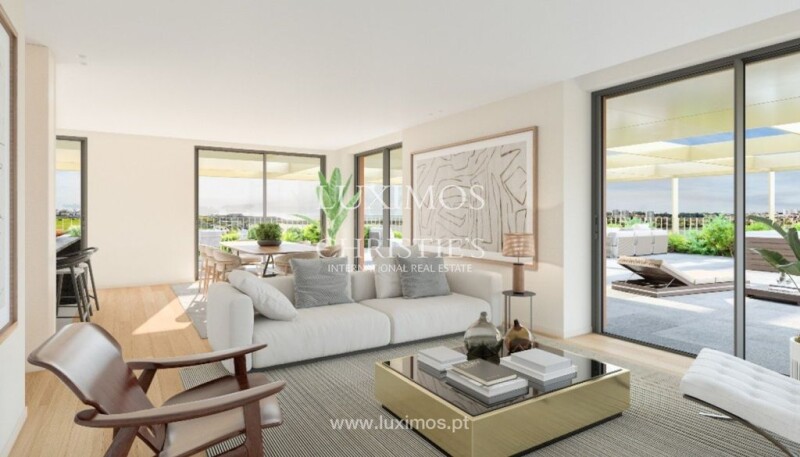 Two bedroom apartment in the Marina Douro private condominium, with large terrace, for sale, facing the Douro river, on the south bank, in Vila Nova de Gaia. Inserted in the Marina Douro condominium, this new-build two-bedroom apartment is part of the Garden Houses segment and favors direct contact with nature, benefiting from a large private terrace that appears as a natural extension of the house, flooding the rooms with natural light. The façade is characterised by the huge potted plants that surround the terrace, which communicates with all the rooms in the house. This apartment stands out for its perfect balance between interior and exterior spaces which, together with the carefully selected materials, create an elegant and exclusive environment. The large living room and the fully equipped kitchen are complemented by private areas with bright bedrooms, one of which is a Master suite all with built-in closets. The Marina Douro condominium offers leisure areas such as a private garden, lounge and children's playground. All the apartments have parking spaces in the building's garage and storage, as well as thermal and acoustic insulation, air conditioning, heat pump, home automation and electric shutters. Opposite the River Douro and Afurada Marina, in a nature reserve between the cities of Vila Nova de Gaia and Porto, on the left bank of the River Douro. Less than 15 minutes from the center of Porto and Gaia, in a luxury and very quiet residential area, a stone's throw from the beach. CHARACTERISTICS: Area: 116 m2 | 1 249 sq ft Bedrooms: 2 Bathrooms: 2 Garage: 1 Energy efficiency: A+ Internationally awarded, LUXIMOS Christie's presents more than 1,200 properties for sale in Portugal, offering an excellent service in real estate brokerage. LUXIMOS Christie's is the exclusive affiliate of Christie´s International Real Estate (1350 offices in 46 countries) for the Algarve, Porto and North of Portugal, and provides its services to homeowners who are selling their properties, and to national and international buyers, who wish to buy real estate in Portugal. Our selection includes modern and contemporary properties, near the sea or by theriver, in Foz do Douro, in Porto, Boavista, Matosinhos, Vilamoura, Tavira, Ria Formosa, Lagos, Almancil, Vale do Lobo, Quinta do Lago, near the golf courses or the marina. LIc AMI 9063.