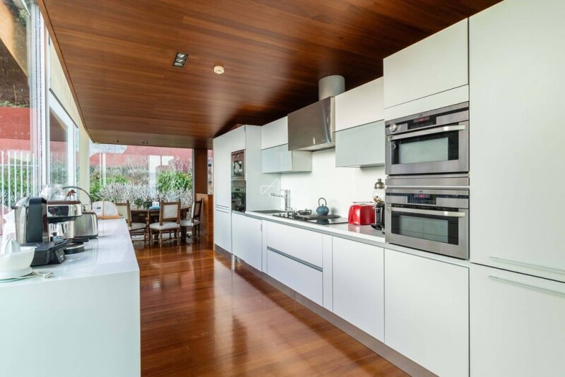 A historic Madeira estate with a total area of 13,000m², where charm and nature meet in perfect harmony. This unique property features two carefully preserved houses and a charming chapel, all surrounded by a lush and rich garden, creating the perfect setting for new memories and special moments. The primary residence has been restored to its best, using materials faithful to its original character. Spanning 230m², it includes three bedrooms, a cozy living room with a fireplace, a renovated kitchen and a laundry room. Nestled within the estate’s luxurious gardens, it offers independent car access, ensuring privacy and convenience. The second residence, with a more contemporary architectural design, extends over 582m². The exterior is clad in volcanic stone from the Azores, while the interior features exquisite Nordic wood covering the walls and ceilings throughout. It boasts five bedrooms, including a suite with a private bathroom and a spacious walk-in closet, offering fantastic views of the gardens, mountains, and sea. All rooms have direct access and views of the magnificent garden. One of the rooms, carefully transformed into an art exhibition space, can easily be reverted to its original use as an indoor swimming pool. Ascending to the first floor via a beautifully wood-paneled staircase, we find the home’s social area: a spacious living room, dining room, and kitchen, all with access to the outdoors, including a balcony and two terraces. Floor-to-ceiling windows provide stunning views of the magnificent garden, Funchal Bay and the sea. This building also includes a closed garage for two vehicles, with direct access to the house. The entire estate is an exuberant garden with century-old trees, fruit trees, and typical Madeira plants, creating a unique and tranquil atmosphere. Currently used as an atelier, there is also a large room with a wide door allowing vehicle access, with its own entrance through one of the property’s three automatic gates. For investors, this property already has an approved project for the construction of tourism units. The plan includes eight rooms and an outdoor swimming pool, offering enormous potential for tourism development.