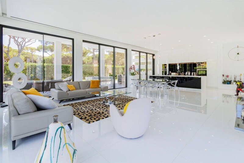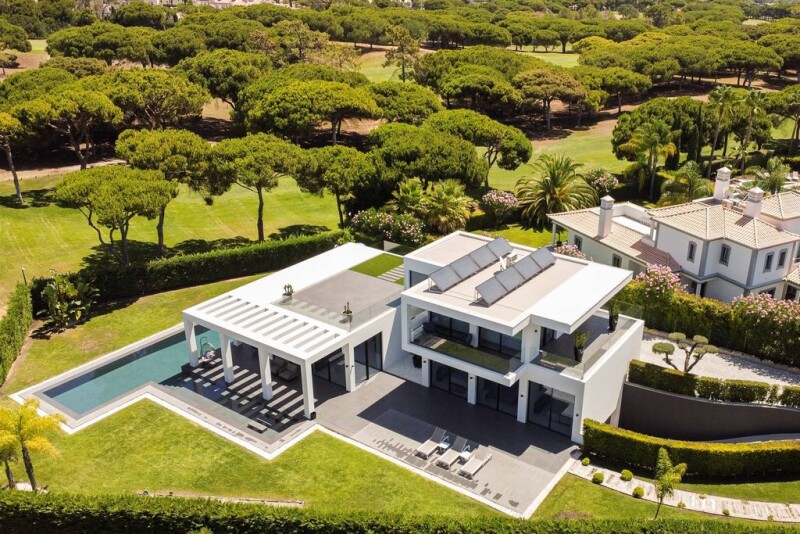 Nestled within the prestigious Vila Sol area in the Algarve, this newly built contemporary villa is a masterpiece of modern architecture, designed by the renowned architect Jutta Hoehn. Situated in a captivating golf resort near the coastline, this exceptional property offers an unparalleled lifestyle, just moments away from the region's pristine beaches, Vilamoura's bustling marina, and an array of delightful restaurants. This villa boasts four bedrooms, each exquisitely designed and adorned with luxurious finishes. All bedrooms are ensuite, providing a private and indulgent space for residents and guests alike. On the ground floor, a thoughtfully placed social bathroom caters to visitors, ensuring their utmost comfort. Sprawling across a generous 1649 square meter plot, the villa provides an abundance of space for outdoor living, with beautifully landscaped gardens and ample areas for relaxation and entertainment. For car enthusiasts or those who love to entertain, a substantial garage can comfortably accommodate up to 10 cars. Beyond its stunning design and spaciousness, this villa is equipped with state-of-the-art amenities. Underfloor heating and solar panels ensure energy efficiency and a cozy atmosphere throughout the year. A bespoke wine cellar promises to delight connoisseurs, offering the perfect setting to savor and display the finest vintages. Additionally, a dedicated office space caters to the needs of those who appreciate the convenience of working from home. Discover a harmonious blend of contemporary elegance and luxurious living in this extraordinary villa. Whether you seek a tranquil retreat or a sophisticated residence near the best the Algarve has to offer, this property is truly exceptional and deserves to be called home. Don't miss the opportunity to own this architectural gem! Contact us today for a private viewing and experience the allure of this magnificent contemporary villa in Vila Sol.