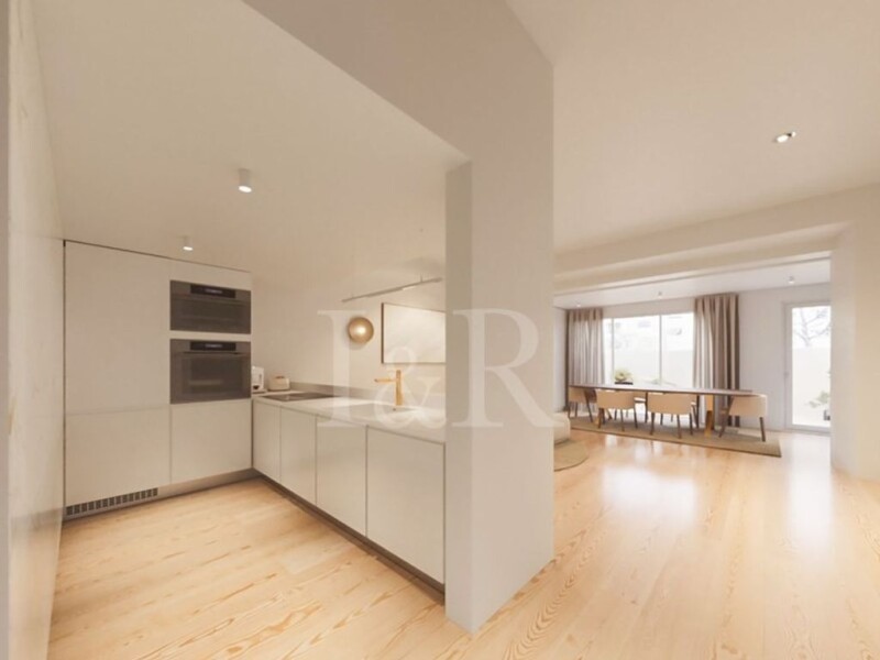 Brand new 2-bedroom apartment of 108sqm with terrace of 17sqm, air conditioning and heat pump, at santos Dumont 69 development. The apartment has a good living room with open kitchen and access to the terrace, a guest bathroom and a suite with built-in wardrobes, which communicates with a smaller compartment that can be a closet, office or guest room, as it has a direct entrance through the hall of the house. Santos Dumonts 69 is a rehabilitation project that is part of the urban renewal program. As such, the project maintains the exterior facade of the building, subject to renovation; the interior of the building is demolished and completely rebuilt, while maintaining the high ceilings. An elevator has also been introduced for greater comfort. In this sense, the interior of the building has been redesigned and modernized, and all apartments have fully equipped and furnished kitchens and high quality finishes. Adjacent to this building will be a large green Eco Park, which will create an Urban Oasis in the heart of the city and bring contact with nature. The parish of Avenidas novas is a very busy and modern neighborhood, with a balanced mix of commerce, offices and housing. This area of the city is characterized by wide avenues intersected by quieter and tree-lined streets. This new development is just a few minutes' walk from the Gulbenkian, El Corte Ingles and next to Praca de Espanha. An extremely central location, easily accessible by road, public transport and especially by metro. This area is also well served, with all amenities, good restaurants and cosy cafes. Energy Rating: B-.
