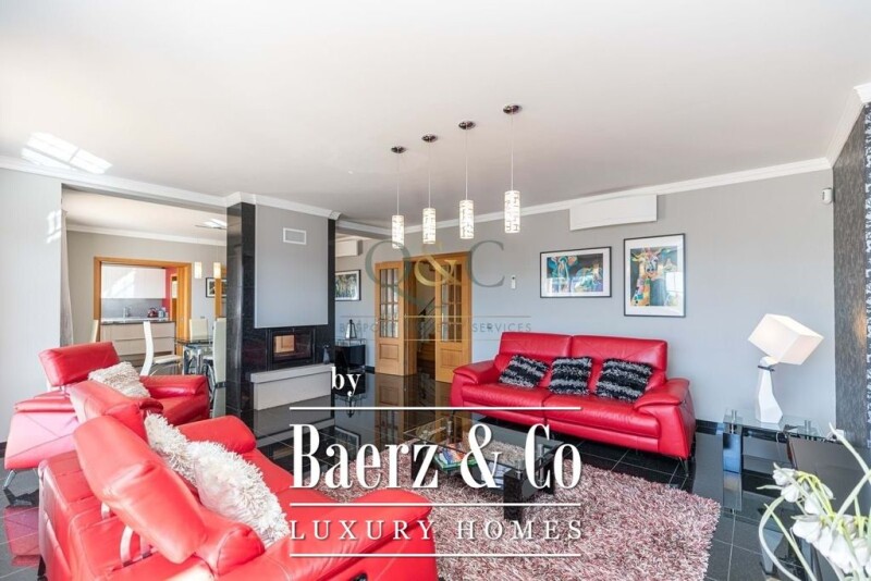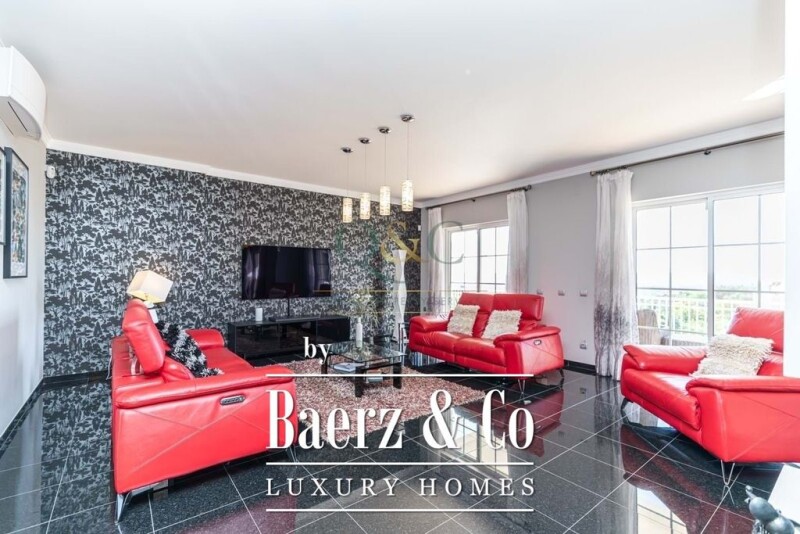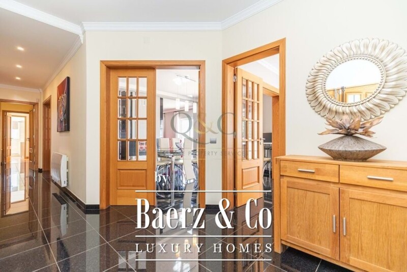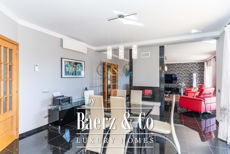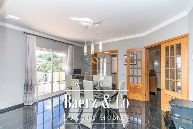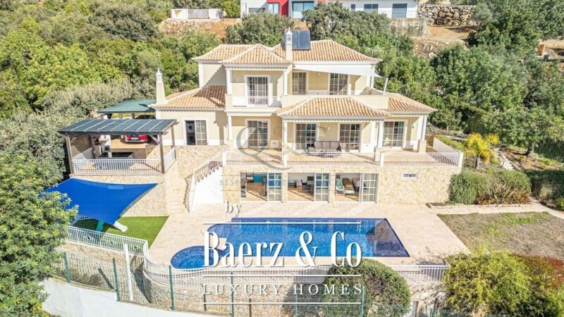 This beautifully presented detached villa, set in an elevated, south-facing position, offers a seamless blend of indoor and outdoor living spaces, accentuated by sweeping countryside views. The property is situated on a fully fenced plot, accessible through electric gates, with a calcada stone driveway leading to ample parking space, a carport, garage an additional storage/bike shed next to the garage . Upon entering through the welcoming front door, you step into a spacious and inviting hallway. The homes design effortlessly combines functionality and elegance, with a convenient back entrance opening into a well-equipped utility room that flows into an expansive open-plan living area. This space includes a fully fitted kitchen with modern appliances and plenty of workspace, an elegant dining area, and a generous sitting room, all arranged around a central fireplace. Floor-to-ceiling sliding glass doors in each area provide abundant natural light and open onto the main terrace, connecting the interior to the beautiful outdoor landscape. On the ground floor, a guest cloakroom adds convenience, while two large double bedrooms, each with fitted wardrobes and en-suite shower rooms, offer a private retreat. Each bedroom also has direct access to outdoor terraces via sliding doors, creating a sense of harmony between indoor comfort and outdoor relaxation. The first floor is equally impressive, featuring a luxurious master bedroom with built-in wardrobes and an en-suite bathroom. This room opens to a spacious roof terrace, perfect for enjoying panoramic views and tranquil sunsets. An additional double bedroom on this level also comes with fitted wardrobes, an en-suite bathroom, and access to a private balcony, offering personal space for family or guests. Both these bedrooms benefit from a sea view. The main terrace is ideal for outdoor entertaining, with a charming covered dining area equipped with a built-in BBQperfect for alfresco meals with friends and family. From here, steps lead down to a stunning swimming pool area featuring a whirlpool section, surrounded by extensive terracing for sunbathing and relaxation. This space is complemented by an astro-turfed play area, a natural lawn, and lush surrounding grounds, creating a versatile and family-friendly outdoor space. Adjacent to the pool area, a well-appointed indoor leisure suite provides an additional entertainment zone, complete with a gym area, ample room for gatherings, a kitchenette, a convenient cloakroom, and a separate storage room for added practicality. This unique villa offers a thoughtfully designed living experience that caters to both relaxation and recreation, set within a serene countryside setting. Just a short drive to Sao Bras de Alportel, Faro International Airport and the Algarve Coast are within a twenty five minute drive from this villa. Features: Seaview Fully fence plot Driveway Carport Garage Solar for hot water Air conditioning throughout Swimming pool with whirlpool area Outside Dining area with built in BBQ area Fireplace Fitted appliances Balcony Roof terrace Double glazing.