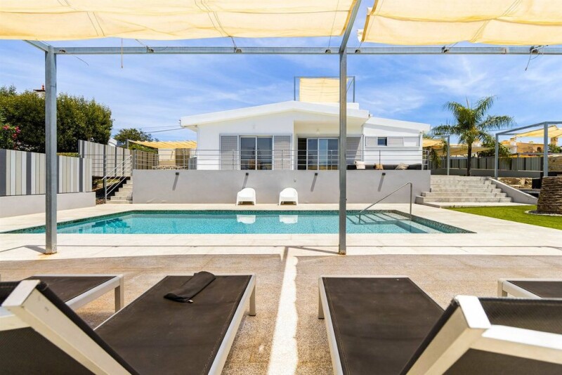 Single-story detached house with 4 bedrooms, living room, and kitchen. Outside, there is a terrace that invites outdoor dining next to the pool with a rooftop where you can enjoy the view of nature. The ideal home to live in or to spend holidays, due to its excellent location, within walking distance of supermarkets, restaurants, and beaches in the area. Just 10 minutes from the best golf courses in the golden triangle and 20 minutes from Faro International Airport.