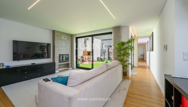 Three bedroom villa with interior terrace built in 2023 in the center of Leça da Palmeira, Matosinhos, in a quiet and peaceful location. The property has a large living room with open spaceinterior terra ce and roof terrace. In addition to the three suites, the villa was built to provide residents with comfort and a sustainable quality of life, with the insertion of equipment such as a heat pump, air conditioning, wood burning stove and photovoltaic panels. The villa has a garage for one car. Location in the center of Leça da Palmeira, with shops and services nearby and the beach a 20-minute walk away. Good access to the A28 highway and easy access to Matosinhos and the center of Porto. CHARACTERISTICS: Plot Area: 180 m2 | 1 933 sq ft Deployment Area: 144 m2 | 1 546 sq ft Building Area: 227 m2 | 2 442 sq ft Bedrooms: 3 Bathrooms: 4 Garage: 1 Energy efficiency: B Internationally awarded, LUXIMOS Christie's presents more than 1,200 properties for sale in Portugal, offering an excellent service in real estate brokerage. LUXIMOS Christie's is the exclusive affiliate of Christie´s International Real Estate (1350 offices in 46 countries) for the Algarve, Porto and North of Portugal, and provides its services to homeowners who are selling their properties, and to national and international buyers, who wish to buy real estate in Portugal. Our selection includes modern and contemporary properties, near the sea or by theriver, in Foz do Douro, in Porto, Boavista, Matosinhos, Vilamoura, Tavira, Ria Formosa, Lagos, Almancil, Vale do Lobo, Quinta do Lago, near the golf courses or the marina. LIc AMI 9063.