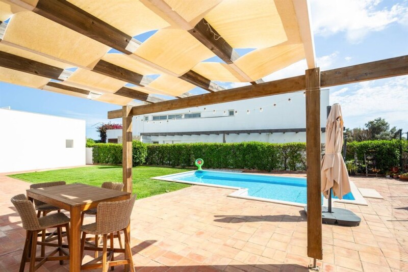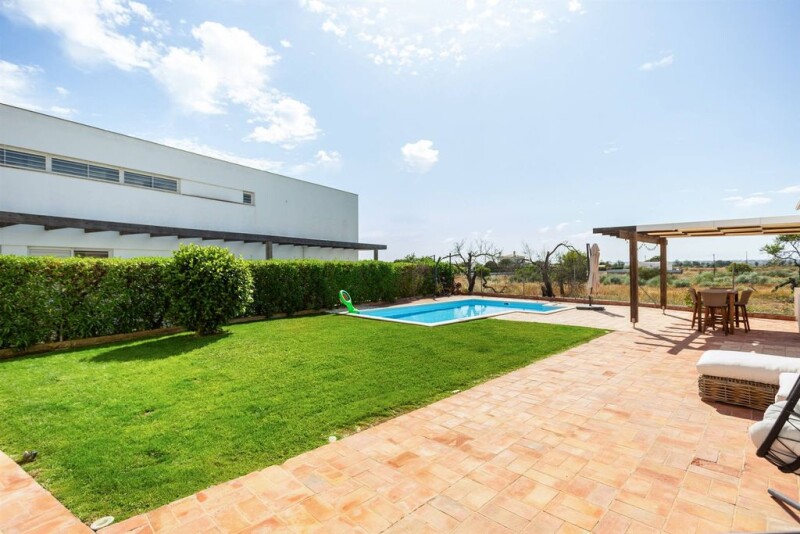 Excellent villa just 2km away from Salgados Beach or Galé Beach, in the parish of Guia and municipality of Albufeira. Completely renovated with high-quality materials. Situated on a plot of land with 546m2, with 270m2 of gross building area and 135m2 of living area. On the ground floor, it consists of a dining room and living room with access to the pool, a fully renovated kitchen equipped with BOSH appliances: refrigerator, microwave, dishwasher, induction hob with internal extractor. A pantry and laundry room. One en-suite bedroom with built-in wardrobe and a guest bathroom. On the 1st floor, it comprises 2 bedrooms with built-in wardrobes and balconies overlooking the Salgados Golf Courses, a bathroom with bathtub, shared by the two bedrooms. A mezzanine with a south-facing terrace, currently used as an office. It also features solar panels for water heating and self-consumption, air conditioning in all divisions, heated towel rails, double glazing, and electric gates. Outside, there are beautiful gardens, fruit trees, swimming pool, and BBQ area. Storage room. Machinery house and carport with space for two vehicles. This villa is located in a quiet residential area, yet close to all services and facilities. Just a few meters from Salgados Golf Course. Nearby, you can also find Apolónia Supermarket. An excellent opportunity for those seeking an excellent area and are lovers of the beach and the sea.