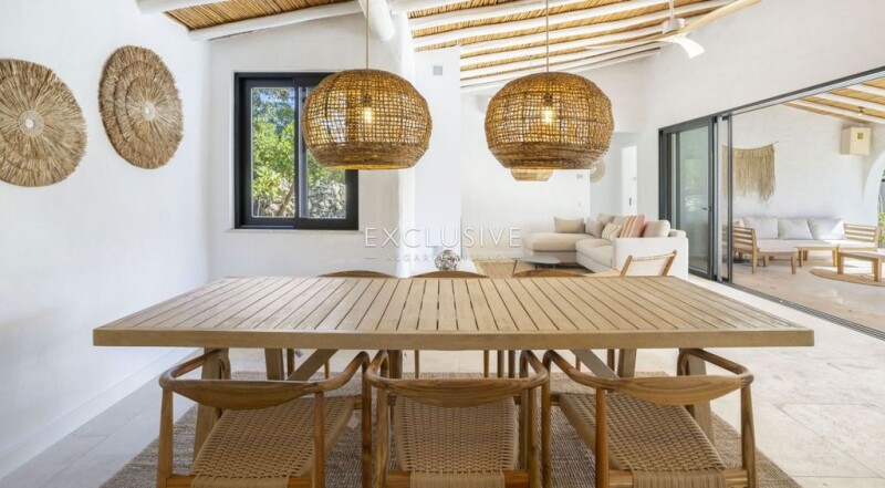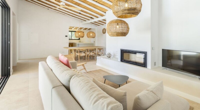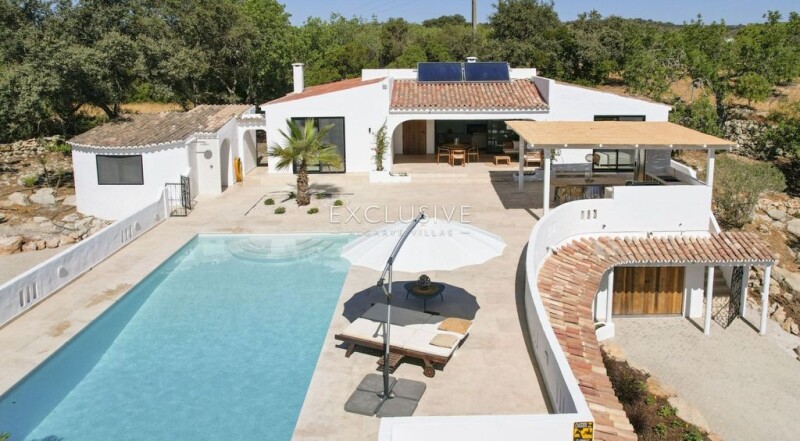This unique villa located in a country setting surrounded by country views, offers great potential as either a holiday home or residence. Arriving through this property through the gates and following a long pathway, the house welcomes you with a charming traditional algarvian style. Renovated in 2024 and fully furnished, this villa is ready to be moved into. The villa is composed of two levels. The main level is composed of a living room with fireplace, open concept kitchen and dining area, utility room, and two en-suite bedrooms, one on each side of the living area, for privacy of each guest. From this level, you access the large terrace with swimming pool and bbq area, and outdoor shower. There is a separate guest en-suite bedroom by the swimming pool side, which is ideal for an office or additional guest room. Below this level, you find 3 independent en-suite bedrooms, each with their own separate access to the exterior for accessing the swimming pool above and surrounding gardens. There is also a separate garage and carport. The property is equipped with air conditing in all rooms, underfloor heating, built-in closets, solar panels, double insulated windows and mosquito nets. The villa has been fully renovated with modern finishes with a natural and tasteful decor. .
