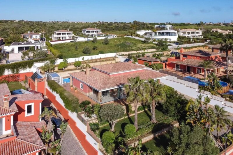 Stunning villa located in the highly desirable area of Lagos, offering a serene retreat just a leisurely stroll from the picturesque beach and dramatic cliffs of Porto de Mos beach. Spanning an impressive 517 sq.m, the villa skilfully merges traditional elegance with contemporary design and has been meticulously maintained and upgraded with bespoke, high-quality materials, creating a perfect family home. It comprises a living room featuring high ceilings letting in plenty of natural light, a fully equipped kitchen thoughtfully designed, promoting an effortless flow between indoor and outdoor living spaces, a 42 sq.m mezzanine serving as a versatile office and library, providing a tranquil area for work or relaxation, 3 bedrooms and 3 bathrooms. Other features include fitted wardrobes, alarm, solar panels, underfloor heating and storage space. The house is set on a plot of 1667 sq.m with a beautifully landscaped garden with an array of fruit trees and a spacious swimming pool equipped with a removable cover. The vast terrace provides unobstructed views and an ideal settings for entertaining guests in complete seclusion.