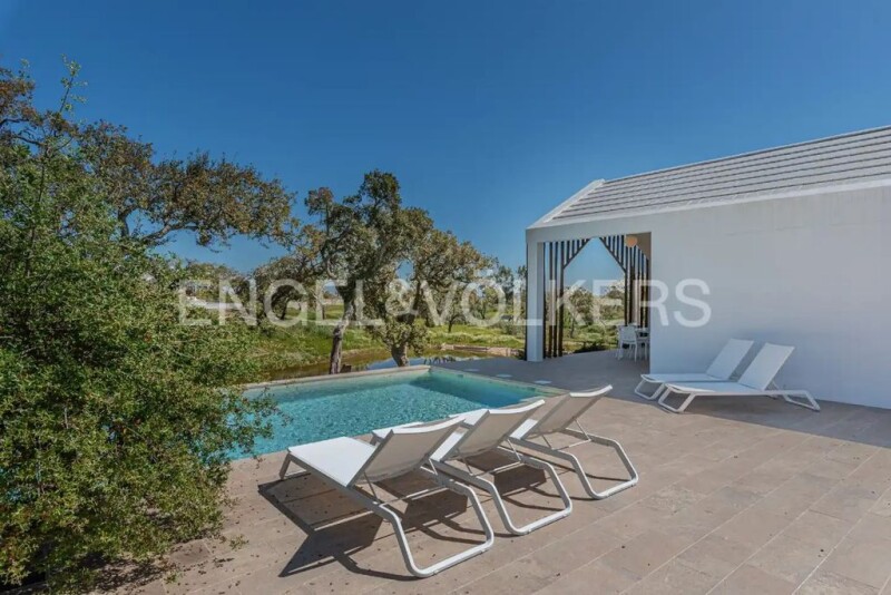 With the unique Alentejo surroundings and inserted in a touristic development 20 minutes from Carvalhal and Melides, this 3 Bedroom Villa with lake view is beautifully integrated in the landscape. Built in 2023, this villa has a total covered area of 216sqm, social area + living and dining room + kitchen 53sqm, 3 suites (27 m2| 22 m2 | 19 m2), private swimming pool 32 m2 (4x8m), Porch and deck with amazing nature views. The villa has air conditioning, fireplace, is delivered fully furnished and equipped with all kitchen appliances and solar panels for water heating. The Villa offers the privacy you need for quality time with family or friends, while at the same time taking advantage of hotel services such as a restaurant, swimming pool, activities as well as housekeeping or property management.