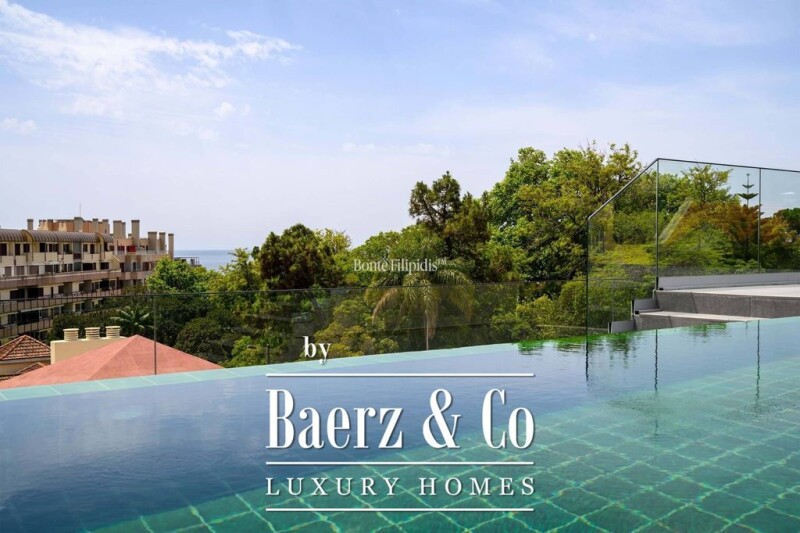 This T5 duplex apartment is located in the Estoril area of Cascais, with a gross area of 412 sqm. The penthouse features a 180 sqm rooftop with a sea view, a private pool, and parking for 8 cars. The entrance floor includes a 70 sqm living room, an office or additional bedroom, and three suites, including a primary suite of 30 sqm with a walk-in closet. It also includes balconies totaling 72 sqm, a full bathroom, a fully equipped kitchen, and a laundry room. On the rooftop, there is an 80 sqm covered area with a bedroom, a full bathroom, and a living area with a kitchen. The 180 sqm terrace has a pool and a sea view. The property features advanced technology, including automated systems, underfloor heating, and cooled ceilings. It was built in 2024 with high-quality materials. It is located near the Casino of Estoril and its gardens, just a few minutes from Praia do Tamariz, the center of Cascais, and Praia do Guincho. The area provides access to beaches, an equestrian center, tennis courts, a gym, green spaces, Salesianos School of Estoril, churches, banks, clinics, restaurants, and various services. It also offers good access to the coastal road and the A5 motorway (Cascais/Lisbon).