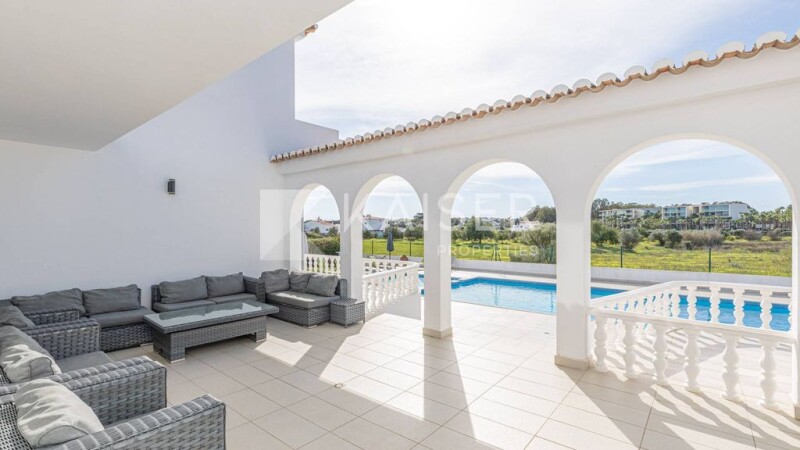 Virtual Tour | Video Privileged south facing villa with pool and garden, located in an exclusive location, within walking distance of the Salgados nature reserve (ideal for bird-watching), golf course and within a very short drive to several beautiful beaches. The property was renovated with amazing high-quality materials and comprises: Ground floor: Entrance hall, large and bright living/dining room with log burning stove and direct access to 2 large patios (one on the front and the other on the back of the villa) and pool area, full equipped kitchen with pantry, storage room, lavatory, 3 bedrooms with private bathrooms and several covered terraces. First floor: Bedroom with a private balcony and a bathroom, 2 terraces converted into 2 bedrooms with en-suite bathrooms. Additionally, the property benefits from double glazed windows, air conditioning throughout, garden comforts with mature plants, a veranda embracing the house and barbecue terrace.