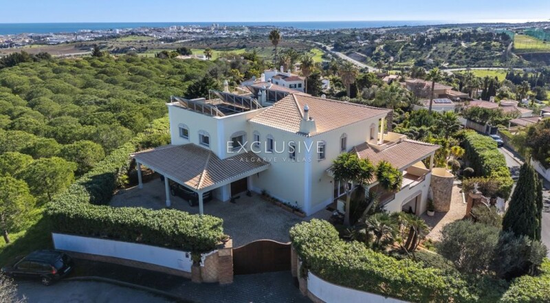 This stunning property, perched high on Piscarreta hill, offers unparalleled views of both the Lagos and Luz bays, situated in one of the most exclusive residential areas of Lagos. The villa is designed for luxury living with exceptional space, comfort, and tranquility. The property is in immaculate condition and built to a very high spec, featuring under-floor heating and cooling, air conditioning throughout, 15 solar panels for domestic water, heating, and pool, as well as 18 Photovoltaic panels for electricity production. It also includes electric shutters and gates, a water softener, UV treatment, alarm system with cctve and various other modern amenities for added convenience. The spacious interior begins with a grand entrance hall, leading to an open-plan lounge and dining area that seamlessly connects to the kitchen. All of these areas open onto a large south-facing terrace, inviting outdoor living with ample space for relaxation. The first floor is reached via a fabulous landing, where three expansive suites are located. Each suite is fitted with its own electric fireplace and TV, with the master suite being particularly large at 32m², offering breathtaking views and access to the terrace. The lower (basement) level, with direct access to the garden and pool via large sliding windows, has been converted into two large suites, one with a fire place used as a bedroom and the other as a small lounge/music room. There is also a games room and a section of the large garage, which offers parking for 3+ cars, has been repurposed as a treatment room with a sauna, which opens out onto the jacuzzi and pool terrace, but can easily be converted back should you require the extra parking. The 10x5 meter infinity pool, heated by solar panels, treated with salt and fitted with an electric cover, waterfall flows into a second shallow pool, a treat for children or dogs. The beautifully landscaped garden, with mature plants, surrounds the property and offers various leisure areas, perfect for outdoor enjoyment. Fully fenced in, high hediging and two high electric gates, increases the sense of confort an privacy. In addition to the luxurious features of the home, the location is highly desirable, with fabulous beaches, golf courses, and other essential amenities just a short distance away. The West Coast Natural Park is also easily accessible, providing an ideal setting for outdoor activities. This rare property offers the perfect blend of luxury, privacy, and stunning natural beauty, making it an opportunity not to be missed. A viewing is highly recommended to fully appreciate all that it has to offer.