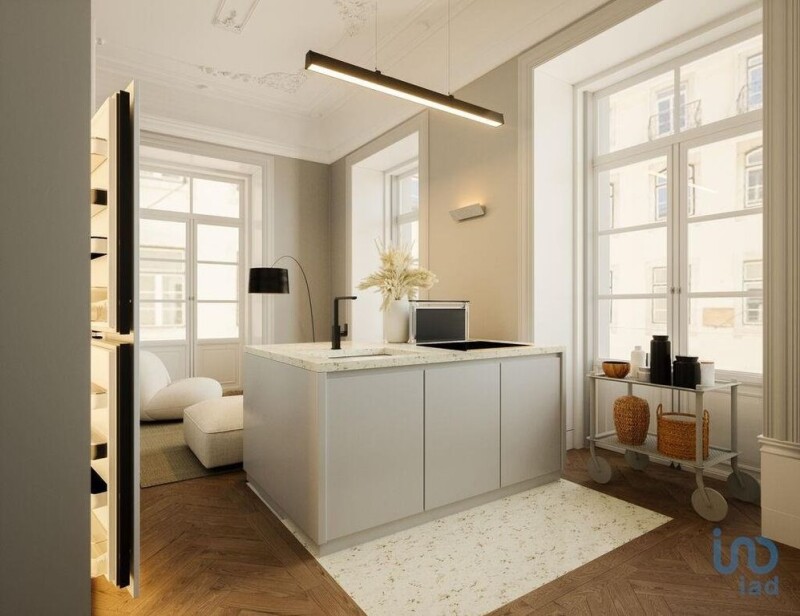 2nd floor |2 Bedrooms Apartment| 109m2 | NEW SIXGILD DEVELOPMENT – RUA DOS DOURADORES 2 Bedrooms Apartment of 109m2 inserted in the new Sixgild development located in the heart of downtown Lisbon, in a Pombaline building of rare beauty, 3 steps from the Tagus River and the main tourist attractions in the city. Apartment consisting of living room and kitchen in Open Space with an area of 38.20 m2 with balconies with a total area of 2.25 m2, 1 Suite, 1 bedroom, 1 bathroom. With very good finishes, with wooden floors applied in the form of a herringbone, equipped with Bosch appliances and air conditioning. The SIXGILD building benefits from a privileged location, having been the target of a complete requalification of the building, with the preservation of interior elements and restoration of the facade tiles. This construction translates into a set of modern apartments, featuring tasteful finishes and providing exclusive environments, with all the charm that your life in the center of Lisbon will have. Building with 5 floors and 18 apartments (6 T0, 4 T1, 7 T2, 1 T3). Do not miss this opportunity! #ref: 66927.