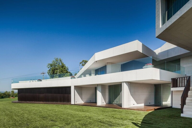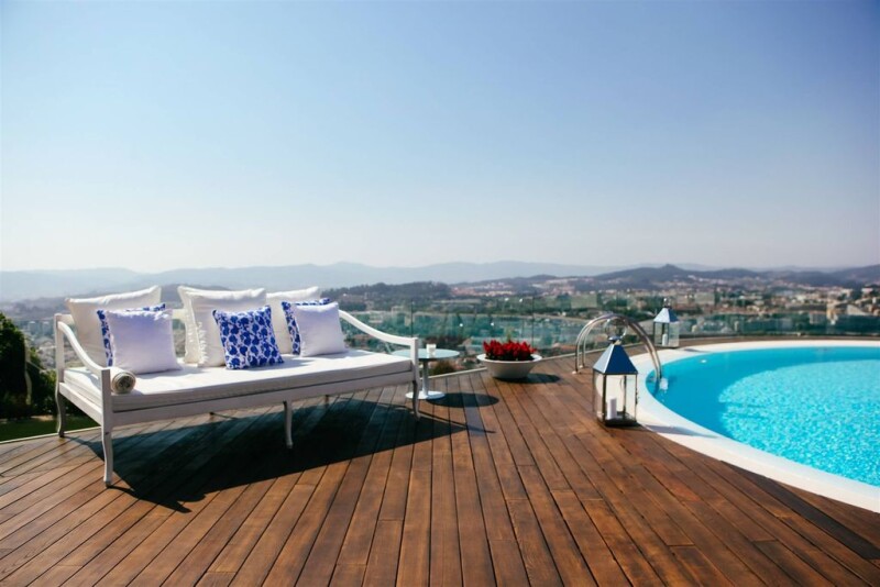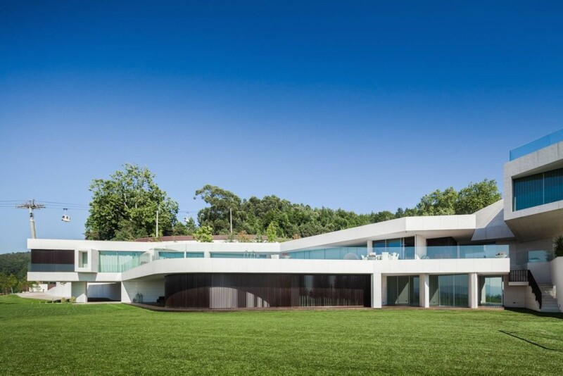 Extraordinary contemporary-style detached villa. Carefully designed for the current owners, it is located in Serra da Penha's most prestigious area and offers absolutely stunning views over the city of Guimaraes. Built on a 4,900m2 plot, this two-story villa has a living area of 883 m2. The entrance floor consists of three en-suite bedrooms, a large office, an equipped kitchen, a dining room, a living room, and a fully equipped spa with hot tub, sauna, and fitness machines. The lower floor comprises two en-suite bedrooms and a living room with three different environments: cinema, music and games area. It also features an indoor sports area (football, basketball and volleyball), a garage for four cars, and changing rooms for the outdoor pool and the indoor and outdoor grass soccer fields. The outdoor area has a beautiful round pool, a solarium area, a grass soccer field, a splendid garden, and an area for walks and bike rides. The entire house is very bright, due to a large glazed area facing the pool, the terrace, and the grass soccer field. It also features a 360-degree terrace. Located 2.5 kilometers from the center of Guimarães, with access to commerce, supermarkets and a shopping centre, to all kinds of services and public transport with a train station two kilometers away. It has excellent access and is a 45-minute drive away from Porto.