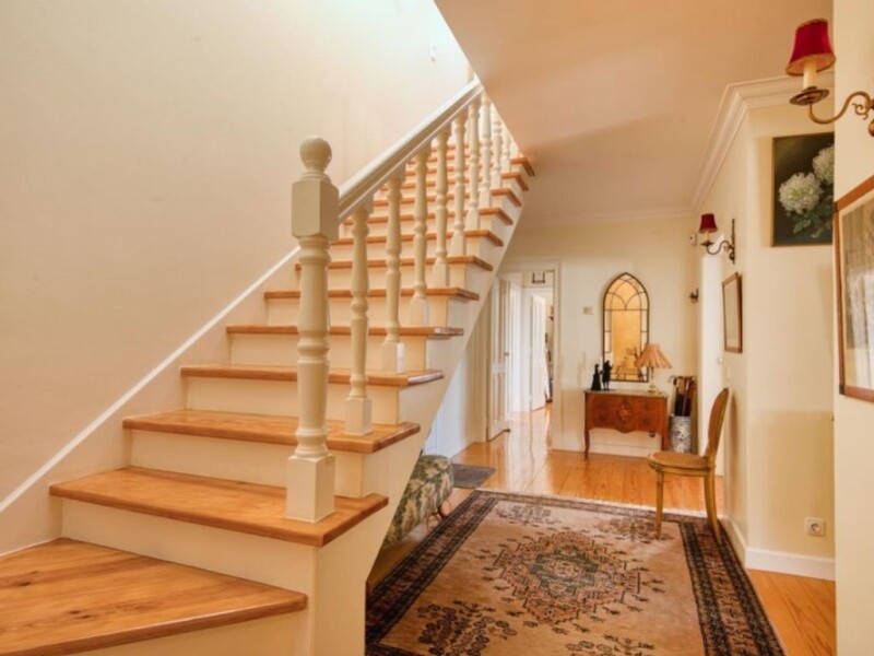 Excellent 5+1 bedroom duplex apartment in the historic center of Cascais, a 5-minute walk from the beach, train station and local shops. With 385m2 of constructed area, the apartment stands out for its large rooms and its brightness due to it's excellent solar orientation ( east, south, west) . The apartment consists of 2 floors which are distributed as follows : Floor 1 : entry hall (15m2) living room 42m2 ( west facing) with fireplace and balcony and access to a pleasant inner patio; dining room (15.6m2) with balcony . West facing; guest toilet; fitted kitchen with sea view and Cascais bay; pantry; bedroom/ensuite next to kitchen (9m2); master suite ( 18.8m2) with dressing room; bedroom 1 (19.2m2) ; 1 bathroom. On the 1st floor (attic with high ceilings): Living room (26.6m2) with sea view; bedroom with 18.8m2; bedroom with 19.2m2; bedroom with 18.7m2; bathroom to be shared by the 3 bedrooms; large garage (box) for two cars and storage area; 1 extra parking space outside the box but inside the garage; central heating; air conditioning access to garage by elevator; Close to several national and international schools and 30 minutes from Lisbon and Lisbon Airport. Ideal for those looking to live in comfort and with a high quality of life and being able to get around on foot. Cascais is a Portuguese village known for its bay of beaches, commerce and cosmopolitanism. Considered to be the most sophisticated destination in Lisbon region, with its palaces and refined buildings. With the sea at its feet, Cascais can boast of having 7 golf courses, a casino, a marina and countless leisure spaces. Energy Rating: C.
