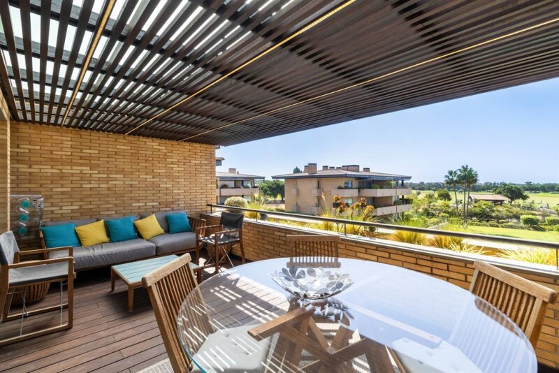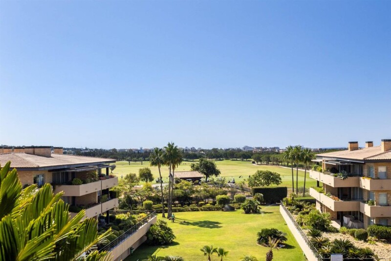 Excellent top floor duplex in one of Vilamoura's most prestigious condominiums, very well located next to the golf courses and just a few minutes from the Algarve's stunning beaches, the Marina and all amenities. The first level of the flat has a spacious and bright living room with access to a large and inviting terrace, a functional fully equipped kitchen, an en suite bedroom and a guest bathroom. The upper floor has two additional suites, as well as a second large terrace with a summer kitchen where you can enjoy your meals al fresco, and a pleasant jacuzzi. The flat offers excellent sun exposure and stunning views of the garden, the pool, the golf course and the sea. Parking for four cars and a storage room are in the basement. The condominium has a reception area, lifts to all floors, a gym, a sauna, a Turkish bath and showers. This is the perfect flat to live in, enjoy on holiday or rent out.