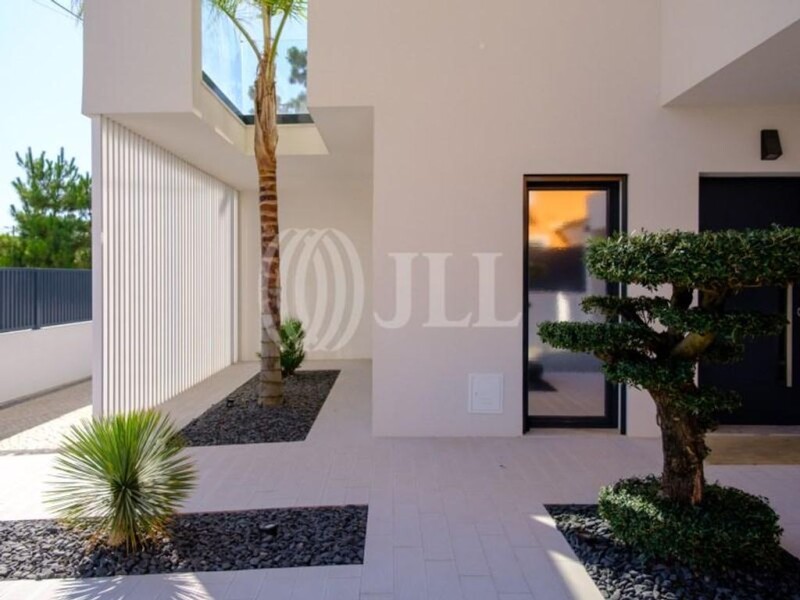 3+1 bedroom villa with 180 m2 of gross construction area, garage and 209 m2 of outdoor area with swimming pool and garden, situated on a 319 m2 plot with two fronts, in the Aroeira-Verdizela area of Almada. Spread over two floors, the contemporary design villa was built at the end of 2018 using the best materials. The pool has an LED-lit waterfall, as does the garden, the house has air conditioning, electric shutters, double glazing and mirrored windows, home automation, solar panels and a closed garage for one car and space for another outside. Outside, there is also a barbecue. The ground floor has a lounge with a dining area with direct access to the pool and garden through a large window (7.80 metres), a kitchen open to the social area and fully equipped, a guest bathroom, a laundry area and an enclosed patio (room + 1). On the first floor, there is a suite and two bedrooms, one of which is currently used as the master suite's dressing room (which can easily be changed). All the bedrooms have a balcony and all the bathrooms have a window. Located in the Aroeira-Verdizela area, 1 km from the beaches of Costa da Caparica and around 650 metres from the Aroeira Golf Club, this is a very quiet area where single-family homes predominate. Lisbon is a 30-minute drive away, as is Lisbon Humberto Delgado Airport. An excellent choice for holidays or permanent residence. Energy Rating: A.