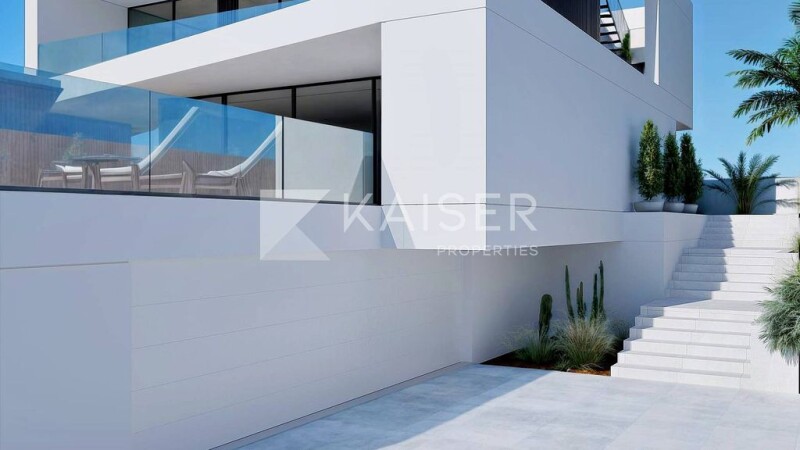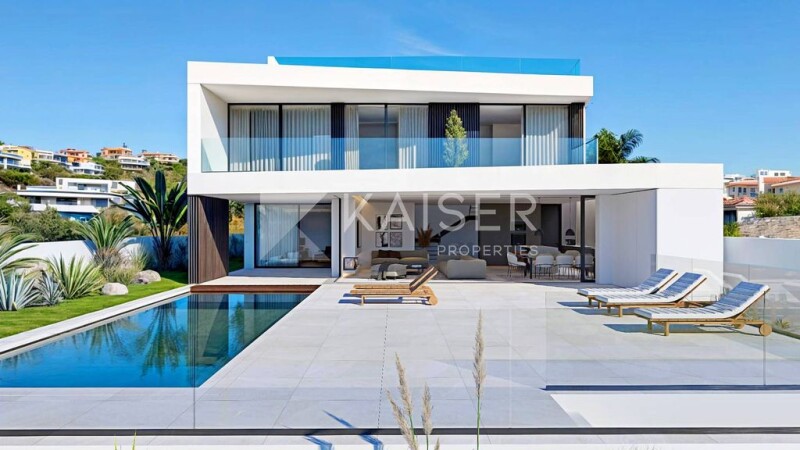 Modern south facing villa with pool, garage/basement and a low-water and low-maintenance mediterranean garden, currently under construction, to be concluded in 2025, located in a sough-after estate close to the centre of Albufeira, marvellous beaches and golf courses.This property comes with a variety of mordern features such as CMV system for indoor air renewal, air con in all bedrooms and living room, underfloor heating (heat pump), elevator (Homelift) and EPS thermal insulation. The architecture of this fabulous home delivers clean lines that seamlessly fuse to integrate interior and exterior spaces.Basement: large parking area for several cars, part of which could be converted into a gym, cinema and/or games rooms.Ground Floor: entrance hall, bright and spacious living/dining room with open-plan kitchen, fireplace with fittted woodburner and direct access to the pool area, lavatory, bedrom with en-suite bathroom.First Floor: 3 bedrooms with en-suite bathrooms, all with access to a large south-facing terrace.Rooftop: pre-installation of jacuzzi, sea views.
