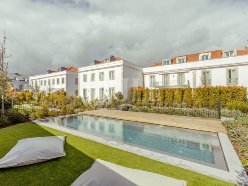 4-bedroom triplex apartment with 342 sq m of private gross area, 200 sq m garden and three parking spaces, located in 'Casas do Palacio', an 18th-century residential building, in Belem, Lisbon. The apartment is spread over three floors with abundant natural light. On the ground floor, there is an entrance hall, corridor, spacious living and dining room, 17 sq m kitchen, both with direct access to the garden, and a guest bathroom. The first floor features a 21 sq m master suite with walk-in closet, two additional bedrooms and a shared bathroom. On the second floor, there is another 26 sq m suite with a private bathroom. The apartment has internal access to the garage with three parking spaces. The building has been rehabilitated, enhancing the spaces and balancing comfort and modernity, while maintaining the architectural aspect of the facades and the grandeur of the original ensemble. Located in a historic area of Lisbon, offering easy access to services, shops and cultural points of interest in the city. It is 13 minutes walking distance from Belem Tower, 18 minutes from Jeronimos Monastery. 5 minutes driving distance from Park International School and Club de Tenis Cif. 20 minutes from Lisbon city centre and the Airport. Energy Rating: B.