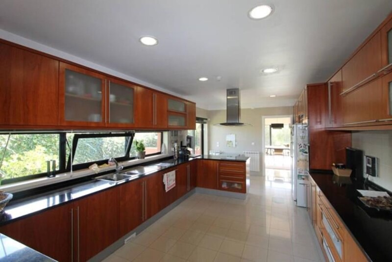 This 582sqm villa in 1456sqm of land has 5 bedrooms and 7 bathrooms all built on one floor and a basement using the highest quality materials. It has 4 suites al with access to the pool, and a corridor that connects the living room and dining room to the fully fitted kitchen. In the basement there is a large games room with a glass viewing the swimming pool and an exit to the outside. It also has a laundry room, maid’s bedroom, and a garage for 2 cars. It has a luxuriant garden and views over the lake of the Golf course.Quinta da Beloura is an exclusive and luxurious resort development with an 18 hole golf course designed by Rocky Rockmore, tennis club, equestrian centre and health club. There is the American international school, shopping mall and the El Corte Ingles supermarket nearby. Nestling in the foothills of Sintra with 24 hour manned security it is but minutes to the motorway and road networks to Sintra, Cascais and Lisbon.