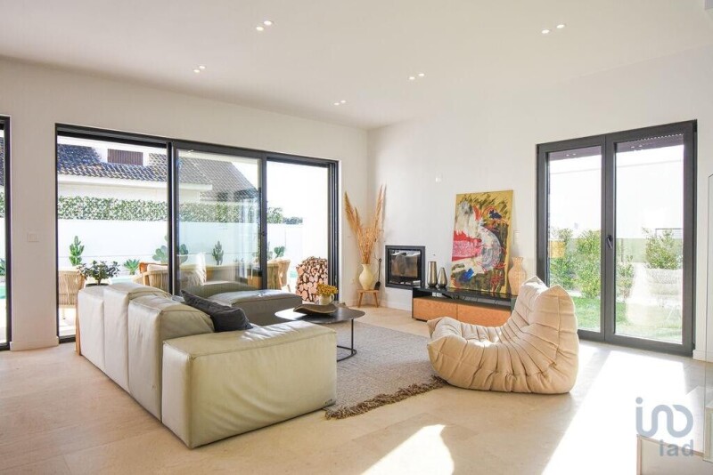 Discover this charming T4 house with 4 bathrooms in the municipality of Sesimbra, where tranquility and nature meet. With a privileged location, this property offers breathtaking sea views and is surrounded by a green area that invites relaxation. Just a 10-minute walk from Praia do Meco beach and a 10-minute walk from the lagoon, built with excellent quality and particular attention to detail, this house stands out for its fantastic solar exposure and its generous plot of 495m², comprising 251m² of usable space offering a comfortable and harmonious lifestyle. Spacious and well-distributed interior spaces: On the ground floor, there is a large open-concept living room, a wood stove, an American kitchen with a large island, and a dining area with direct access to the garden, a south-facing pool, and a barbecue area, creating the perfect setting for unforgettable moments. Also on this level, there is a laundry-storage room, a full bathroom, and a welcoming entrance hall, as well as an elegant staircase. On the first floor, the house features a bright and comfortable suite and three spacious bedrooms, offering privacy and versatility, along with two large bathrooms. This level is completed by terraces with enchanting views, as well as a functional circulation area. Exterior designed for leisure: The pool is ideal for enjoying the sun all day, while the barbecue, large table, and outdoor space invite pleasant moments of conviviality. Additionally, the house has a garage, as well as an extra space for three cars. High-quality finishes and amenities: Among the highlights are the fully equipped kitchen, built-in Daikin air conditioning units with Wi-Fi connection, PVC frames with double glazing, thermal electric shutters, central vacuum, automatic gates, and a videophone. Location combining natural beauty and proximity to the beach: Nestled in the beautiful Lagoa d'Albufeira, this house offers a unique environment, perfect for those who appreciate tranquility and contact with nature. The proximity to the lagoon and the beaches of Meco and Sesimbra provides an idyllic setting for walks and outdoor activities. Moreover, the region offers local shops, services, and access that allows for quick reach to the center of Sesimbra and Lisbon in about 30 minutes. With an energy classification of A+, this is a unique opportunity to live with quality and comfort in perfect harmony with nature. Schedule your visit now! #ref: 132302.