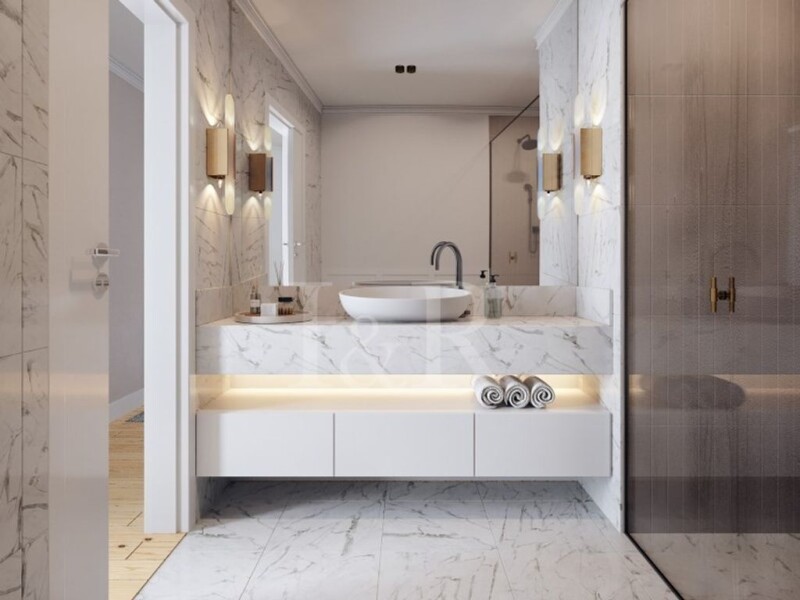 Charming two-bedroom apartment located in the Maria Residences development in Anjos. This apartment has 113 sqm of gross private area and a 30 sqm terrace. It is distributed as follows: upon entering, we find an entrance hall, and to the right is the living room with an open kitchen. Two bedrooms, both en suite, with private bathrooms and an additional guest bathroom. Both bedrooms have fitted closets. Pleasant 30 sqm terrace accessible from the living room and kitchen. Maria Residences is a boutique development, full of charm and designed by the prestigious Portuguese studio Gavinho Architecure & Interiors. It is located in Lisbon, in an area that has been the target of a major redevelopment, the parish of Arroios. This 6-storey development consists of 10 apartments and a store. The old building, with 4 floors, will be extended to 6 floors in this new project, maintaining and respecting its original structure and decoration as much as possible. The apartments range in size from 54 sqm to 153 sqm and range in type from T1 to T3. Some of them have balconies or terraces and are characterized by their unique character, careful interior design and quality furnishings. All the apartments are delivered furnished and the value of the furniture is included in the price. High-level finishes and materials such as solid pine wood flooring, a natural stone kitchen fully equipped with TEKA appliances and built-in cupboards. All apartments include air conditioning, double glazing and the building also has an elevator. Lisbon's Anjos neighborhood has experienced a lively renaissance in recent years. Inserted in old Lisbon, on Avenida Almirante Reis - one of the most sought-after avenues for investment - Anjos is known for its edges, economic activities and multicultural atmosphere. This historic area of Lisbon is known for its multicultural atmosphere and gastronomic variety. It is home to more than 50 cafes and restaurants, the city's most prominent 19th-century architecture and perhaps the best balcony views in the Portuguese capital. Full of movement and surrounded by services, the Anjos area also has a vast transport network, including metro, bus and tram. Its proximity to Lisbon's historic centers on foot, such as the Alfama, Mouraria, Chiado and Rossio districts, make this an even more desirable area. Energy Rating: B-.