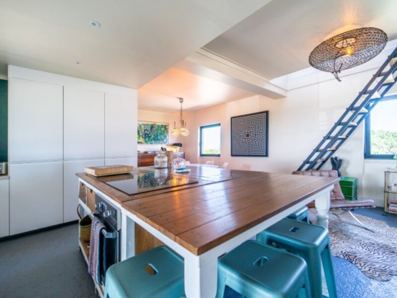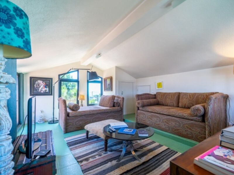 Located in the middle of a side street with the beaches of Caparica and the Capuchos golf course as neighbours, this charming 5-bedroom villa, in addition to a lot of quiet, benefits from a stunning view over the Atlantic Ocean, from Cape Espichel to Cascais. With the recent total refurbishment of the 4 floors, the interior of the villa results in a unique combination of styles that gives it immense character, and the villa is currently classified in local accommodation. The villa is composed as follows: In the basement there is a studio consisting of kitchen, bathroom and bedroom/living room. On the ground floor, a large suite, two beautiful bedrooms with built-in wardrobes and a bathroom. On the 1st floor, there is a kitchen open to the dining room, living room with fireplace and the guest bathroom. In the attic, a living room/bedroom and a balcony/terrace with ocean views. Outside, the 604m2 plot consists of: - garden with its aromatic vegetable garden; - Swimming pool, engine room and storage; - Annex converted into a suite; -Laundry; - Outdoor parking for two cars. Contact us to schedule a visit. Energy Rating: E.