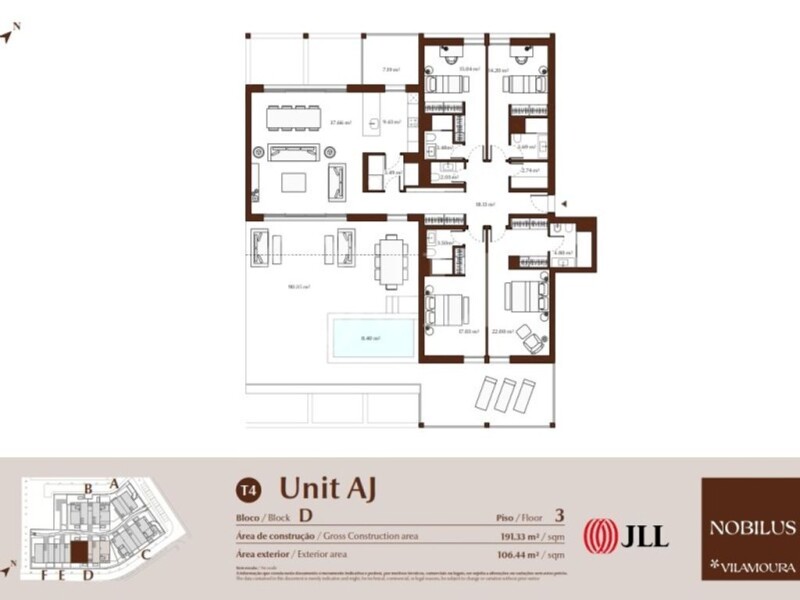 New 4-bedroom apartment, with 191 sqm of gross private area, private pool, terrace and parking, in Nobilus, the new private condominium in Vilamoura, Algarve. This private condominium, where sustainability merges with design, has been developed with sustainable materials, achieving a balance between comfort, sophistication, and respect for the environment. Its essence is reflected in the innovative construction, through the application of cross-laminated timber (CLT) that provides strength and is an environmentally efficient alternative, reducing the carbon footprint. All apartments have access to the gardens and pools of the condominium. Some units have private parking and a pool. Residents of Nobilus also have the privilege of accessing Vilamoura Plus, an exclusive program that provides access to luxury hotels, spas, prestigious golf courses, and a wide range of activities in Vilamoura's stunning beaches and marina. Located a 5-minute driving distance from the Family Golf Park at Parque Mourabel, 10 minutes from Vilamoura Beach, Vilamoura Casino, and Passeio das Dunas. It is 32 minutes from Faro International Airport and 2 hours and 25 minutes from Lisbon and Lisbon International Airport (Humberto Delgado). Energy Rating: A+.