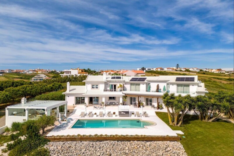 Welcome to a unique oasis of peace with direct beach access on Portugal's Silver Coast. This villa, currently run as a boutique guest house, with a plot area of 10,760m² offers unobstructed views of green nature and equally breathtaking sea views. Located at the end of a cul-de-sac, you will find unparalleled privacy here. Only 450m separate you from the beach Praia de Porto das Barcas, which can be reached on foot via a beautiful, quiet path through nature. Facing south, you have an excellent sunny location here all year round. A large outdoor pool invites you to cool off and swim. The glass-covered BBQ area is ideal for family celebrations and barbecue events. The park-like, automatically irrigated garden also contains a wooden deck for outdoor sports sessions. Wild nature is offered by the part of the property on the southern slope, which is perfect for e.g. as a vineyard. There are a total of seven suites on two floors, which are individually furnished with great taste and high quality. Your vehicle will find a weather-protected space in the garage and there are five more parking spaces for guests within the fenced property. Four suites are located on the ground floor, each with a separate entrance and direct access to the pool. In addition, the open, daylight-flooded living and dining area with fireplace offers peace and relaxation. Next door is a practical kitchen for preparing culinary experiences. In addition to a guest toilet and a laundry room with integrated space for the villa's technology, two separate staircases lead to the upper floor. In the south-eastern wing of the upper floor there are two spacious master suites with private balconies and fantastic sea views. Special attention should be paid to the high-quality equipment and decoration of the rooms, which is included in the price. In the north-west wing of the upper floor there is a separate suite, also with its own balcony. If you are thinking of running a guest house, this suite could be your living studio. Here you have your privacy and can still offer guests an excellent service "close to the customer". With this property, there is also the possibility of taking over the existing, successful business. The villa is equipped with underfloor heating in all areas. All suites have air conditioning that both heats and cools. An e-charging station provides the energy of your e-car. The heat pump and a recently added photovoltaic system result in top energy efficiency. Atalaia itself is a traditional Portuguese place that offers restaurants, cafes, small supermarkets, a hairdresser and a bank. For all major supermarkets, top medical care, public bus connections to Lisbon, schools, kindergartens, etc., the small town of Lourinha is only a five-minute drive away. The airport of the capital Lisbon can be reached within 50 minutes.