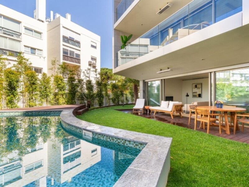 2 bedroom flat, new, of contemporary architecture, inserted in an exclusive Bayview Atlantic condominium in the centre of Cascais, in a premium location, a stone's throw from the beach, Cascais train station and service area. With 130m2 of gross private area, this flat stands out not only for its luminosity but also for its high quality finishes, the charming private garden of 157m2 and private pool. The flat consists of: - entrance hall with 4m2 - Living room with 30m2 with exit to terrace and pleasant garden - kitchen open to the living room with 10m2 fully equipped; - Social toilet - Laundry room with 4m2 - Suite with 21m2 with access to a pleasant garden: - Suite with 12m2 with wardrobes. - 2 parking lots (one with electric charger). -1 storage room Apartment equipped with home automation, underfloor heating in the bathrooms, air conditioning, thermal and acoustic insulation. The flat is rented at the moment An opportunity for investors ideal for those who want to live in the centre of Cascais with all the comfort and quality of life of the current visa. Cascais is a Portuguese village known for its bay of beaches, commerce, and cosmopolitanism. Considered the most sophisticated destination in the Lisbon region, the palaces and the refined elegance of all buildings prevail. With the sea at its feet, Cascais can boast of having 7 golf courses, a casino, a marina and numerous leisure spaces. 30 minutes from Lisbon and the international airport. Porta da Frente Christie's is a real estate brokerage company that has been working in the market for over two decades, focusing on the best properties and developments, both for sale and for rent. The company was selected by the prestigious Christie's International Real Estate brand to represent Portugal, in the areas of Lisbon, Cascais, Oeiras and Alentejo. The main mission of Christie's Front Door is to privilege an excellent service to all our customers Energy Rating: A.