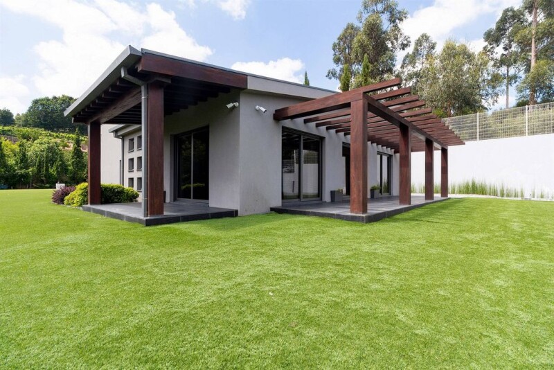 Extraordinary four-bedroom detached villa, set on a 3,040-square-meter plot, offering a contemporary design and the unique experience of a single-story villa. The entertaining area consists of a large 36-square-meter living/dining room with a fireplace and access to the garden, a second 12-square-meter living room, a 22-square-meter equipped kitchen with a natural stone worktop, and a guests' bathroom. The private area comprises a spacious 29-square-meter master suite and three bedrooms served by a full bathroom. The bedrooms feature fitted wardrobes and open onto the outdoor area. It has several features such as garden, water well, fruit trees, elements of Home automation system, CCTV, alarm, central heating system, intelligent management biomass, integrated DHW system, independent and automatic irrigation systems, swimming pool and a natural water fall (365 days a year) in a water mirror system, this centuries-old hydraulic structure originates in a mine with its source in the historic Castro de Monte Mozinho (a village from the Roman period, 1st century AD). The property also includes a 21.8-square-meter garage with enough room for four cars. Located 10 minutes away from downtown Penafiel, with easy access to supermarkets, street shops, and a wide range of amenities such as a post office, hospitals, pharmacies, health clinics, and public services. Motorway A4 exits are about 10 minutes away, making it easy to reach the city of Porto and other destinations.