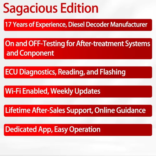 O DTS Mate Pro Sagacious Edition é uma poderosa ferramenta de diagnóstico e programação tudo-em-um para veículos a diesel, oferecendo suporte avançado para mais de 200 modelos de ECU, DCU e motor de combustível. Projetado para sistemas de 12 a 24V, é compatível com os principais caminhões a diesel, incluindo os modelos Faw Jiefang J5 e J6. Com recursos como auto-reconhecimento da ECU instantânea, leitura de código de erro em tempo real e streaming de dados com um clique, essa ferramenta ajuda a resolver problemas em minutos-sem a necessidade de remover a ECU. Conecte-se diretamente via OBD, identifique os tipos de ECU, mesmo que as placas de identificação sejam ilegíveis e obtenha suporte em tempo real de uma equipe técnica dedicada. O dispositivo DTS simplifica a manutenção da frota, o diagnóstico do motor de combustível e a programação da ECU em um fluxo de trabalho perfeito e eficiente. Ideal para oficinas de veículos comerciais, equipes de reparo móvel e operadores de frota em Lisboa, Porto, Amadora, Braga, Setúbal, esse scanner avançado é construído para maximizar o tempo de atividade e minimizar a complexidade do reparo.
