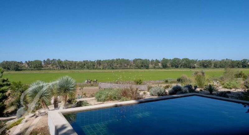 Unique property | Privacy | 5 suites | View of the rice fields | 496 m2 | Plot 6495 m2 | Beach | Swimming pool | Magnificent garden | Condominium Brejos da Carregueira de Baixo| Comporta. This unique property is located in the preserved landscape of the Brejos natural reserve facing the rice paddies with scenic pine trees in the background. It is just a short walk from the private Brejos beach only accessible to the homeowners with a private card. A hidden gem with 6,495 m2 of land with panoramic views over the rice fields. A state-of-the-art Comporta cabana-style property of 496 m2 with 7 separate cabins, including 5 suites, a large living room and kitchen-dining room with separate laundry area. Architecture and interior design by architects Labro&Davis and construction by Nuno Carvalho. The heated swimming pool (5x5), bird pond, 2 private dens or working areas (one of the dens perfectly fits for meditation and yoga), 2 parking spaces, 1 closed garage and a technical - storage area are set in the magnificent garden by the famous landscape designers Louis Benech and Alexandra de Csabay. Being in a triple A location of the Brejos da Carregueira de Baixo condominium, you enjoy absolute privacy and the contact with nature that Comporta provides. It also offers a convenient distance and proximity to the villages of Comporta, Carvalhal and Lagoa Formosa with stores and restaurants. All this just a short walk from Praia dos Brejos, 10 minutes from the famous beaches of Carvalhal, Pego and Comporta and a 1-hour drive from Lisbon and its international airport.