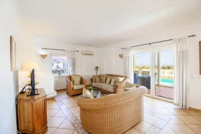 Stunning villa located in Vale da Lama with beautiful countryside, beach and sea views. Situated just 6 minutes from the beach. The 170 sq.m south facing villa offers a fantastic coastal lifestyle. It comprises an entrance hall, living / dining room, fully fitted kitchen, spacious pantry / laundry room, basement, 6 bedrooms and 4 bathrooms including a master en suite bedroom with large private sea views balcony. Other features include air conditioning, fireplace, double glazing, electric shutters and parking. Outside is the perfect place for entertaining featuring a covered terrace, a swimming pool and bbq area ideal for al fresco dining with a view.