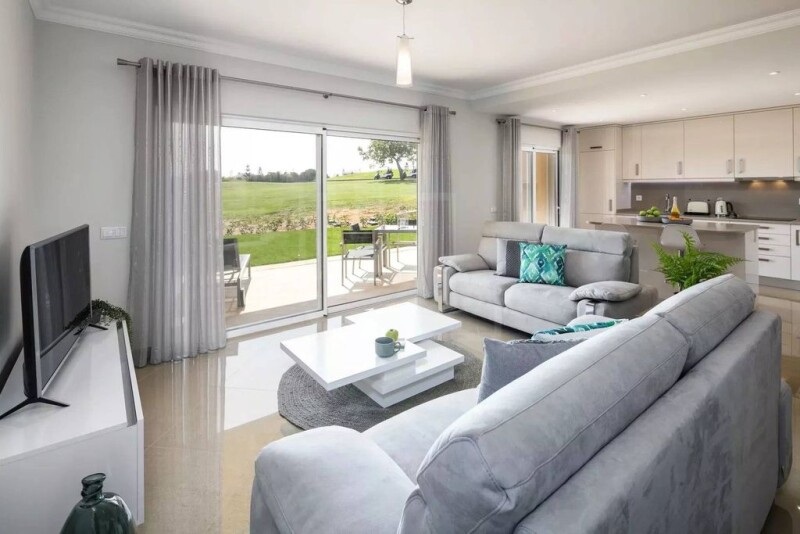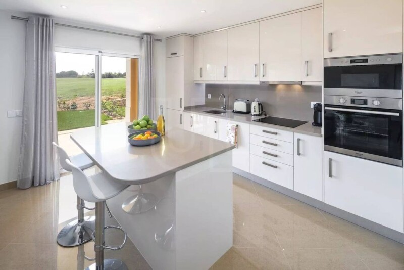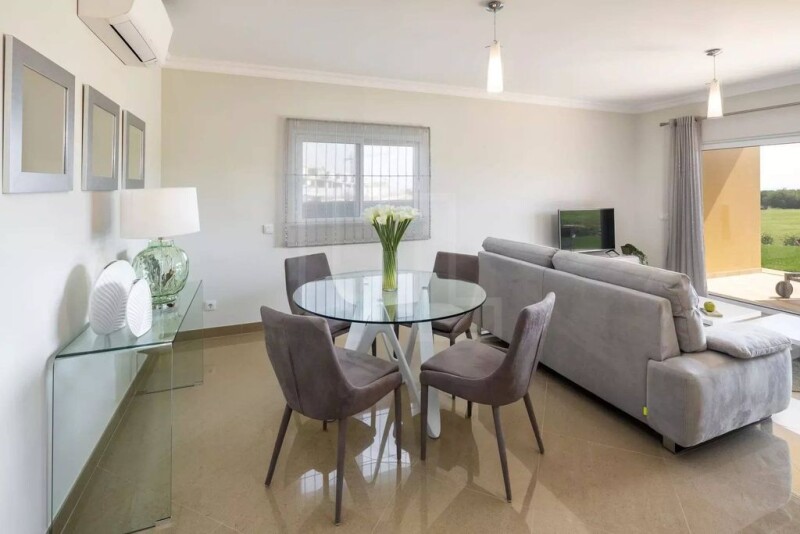 Fantastic new apartment located in a prime position in the prestigious Boavista Golf and Spa Resort in Lagos. The 132 sq.m apartment is set on a new village development on the resort and has been built to a high standard. It comprises an open plan contemporary living / dining room, fully fitted kitchen, 2 double bedrooms, 2 bathrooms and a balcony. Other features include solar panels, underfloor heating, air conditioning, double glazing and electric shutters. Additionally there is an allocated underground parking space and storage cupboard. Resort facilities include an indoor pool, outdoor adults swimming pool, a children's pool, gym, and golf course. Exclusive access to owners and members only.