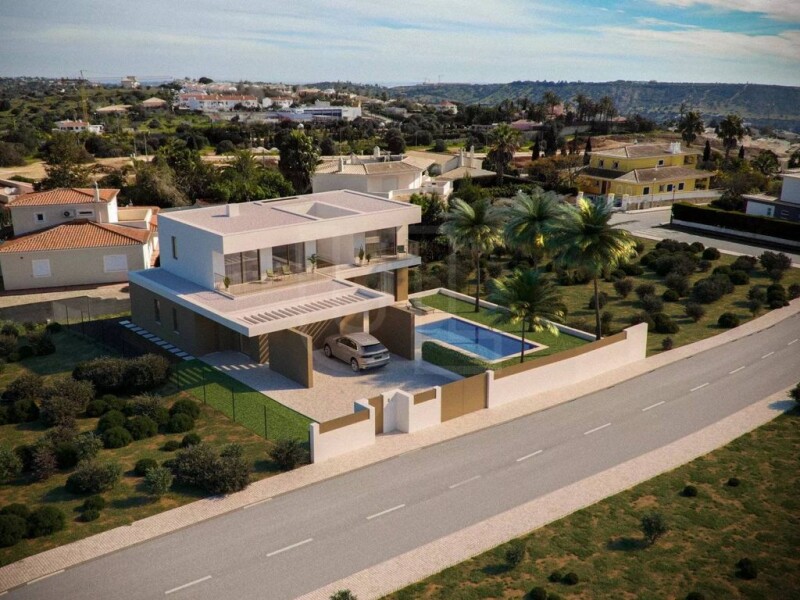 New modern villa located in a quiet sought after neighbourhood in Praia da Luz near Lagos, with sea views. Situated walking distance to the beach, restaurants and amenities. A project fully approved by Lagos Municipal Council to begin construction immediately. The construction model provides flexibility: after purchasing the plot, you sign a contract with a reputable local builder who has completed over 100 villas. Buyers benefit from a competitive price, personalizable finishes, and a guarantee on new equipment and materials. The 255 sq.m property combines modern luxury with the Algarve's serene natural beauty. It is distributed over 2 floors and comprises a spacious living room, open plan kitchen, 4 bedrooms and 3 bathrooms. Other features include air conditioning, double glazing, underfloor heating and solar panels. Outside is the landscaped garden with heated swimming pool.