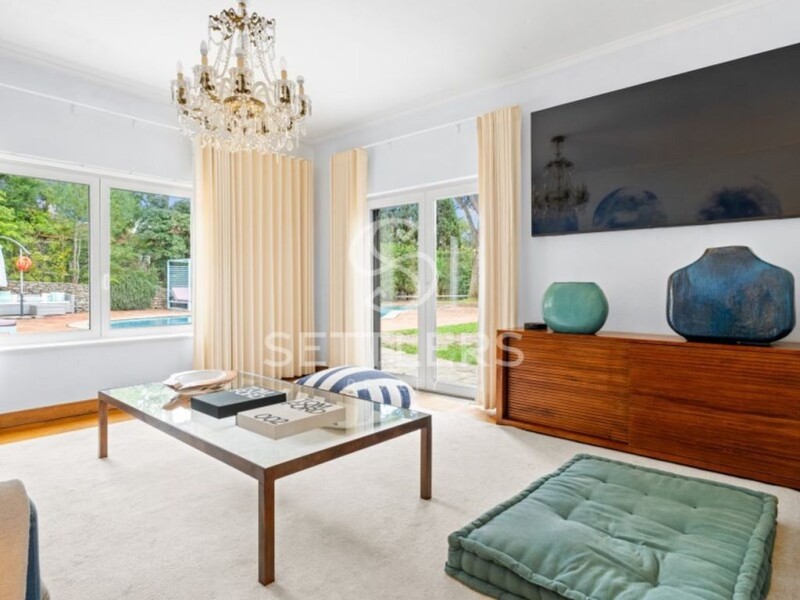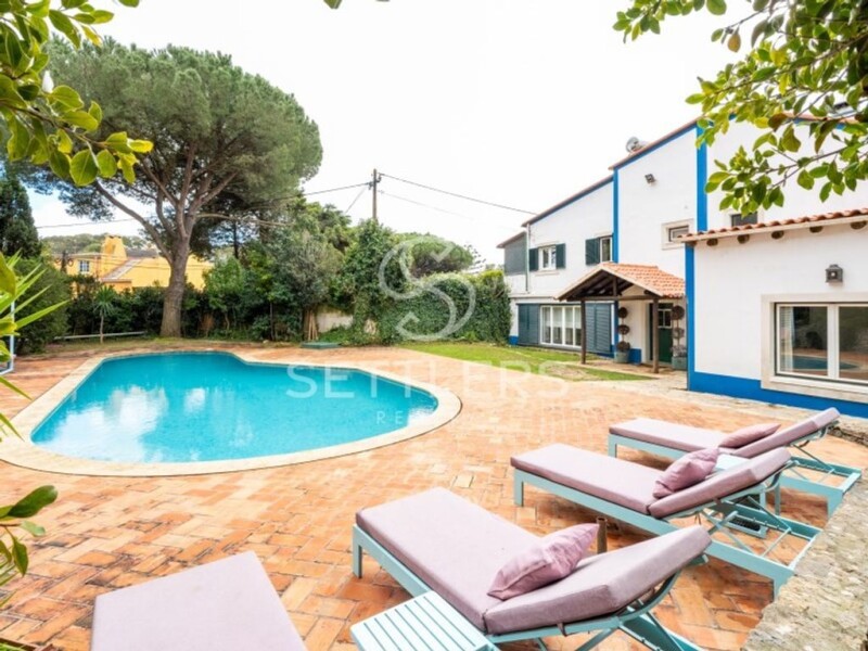 Charming villa with a unique character, fully renovated, set on a plot of over 1,900 m² in Atrozela, Cascais. The main house, spread over the ground and first floors, offers spacious rooms and a sophisticated style with French wooden flooring while maintaining the original features of its construction. Ground floor: Entrance hall, main living room (37.74 m²) with fireplace and heat recovery system, west-facing; TV room (18.48 m²), east-facing; kitchen (20.80 m²) fitted with Newcastle Furniture Company, dining area, and pantry (2 m²); office/bedroom (15.99 m²) and a full bathroom with shower (2.55 m²). There is also a high-ceilinged room (30 m²), allowing for a mezzanine, facing east/south. First floor: Hallway with wardrobes, south/west-facing suite with a walk-in closet (26.05 m²) and a full bathroom with bathtub and window; 2 west-facing bedrooms (9.45 m² and 11.55 m²), one with a wardrobe; and a full bathroom with bathtub and window (4.25 m²). Equipped with central heating, double glazing, and solar panels. Outside, you will find a garden with a swimming pool supplied by a borehole, a barbecue area with a covered dining space, and a garage with a laundry room and an additional bathroom. In addition to the main house, there are two fully equipped independent bungalows, currently used for Airbnb, generating attractive monthly income. Just a 5-minute drive from two international schools, TASIS and Carlucci, 5 minutes from the A5 motorway, and 10 minutes from Cascais and Sintra. If you are looking for a retreat that combines charm, comfort, and privacy, this residence is the perfect choice. This information is not contractual, and the buyer must verify all property documentation in advance. This listing may contain some inaccuracies for which the agency cannot be held responsible. Energy Rating: C Ref.: SR_554.