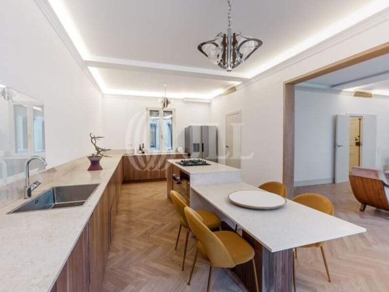 4-bedroom apartment with a gross area of 241 sqm, completely renovated, with high ceilings and terraces, located in a charming building with an elevator near Avenida da Liberdade, in Lisbon. It comprises an entrance hall, a west-facing living room of 45 sqm, a modern open-plan kitchen fully equipped with 30 sqm, a laundry area, a guest bathroom, a 25 sqm master suite with a terrace, a 15 sqm suite, and two bedrooms with wardrobes and a shared terrace. The finishes are of high quality and taste, with herringbone wooden floors, air conditioning, and central heating. The use of 2 covered parking spaces is currently in contract, valid for another 2 or 5 years, located 20 meters from the building. Located within a 5-minute walking distance from Avenida da Liberdade and Campo dos Martires da Patria. It is situated close to the Nova University, Faculty of Medical Sciences, and a 5-minute drive from Hospital de Santo Antonio dos Capuchos. It is also conveniently located within a 5-minute drive from the main road connections in the city, such as A5, A2, 2ª Circular, Eixo Norte-Sul, A1, and A8. It is a 20-minute drive from Humberto Delgado Lisbon Airport. Energy Rating: D.