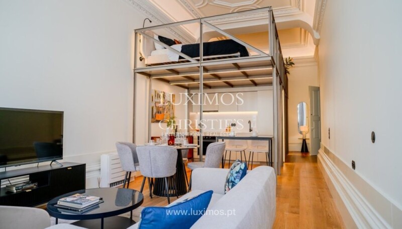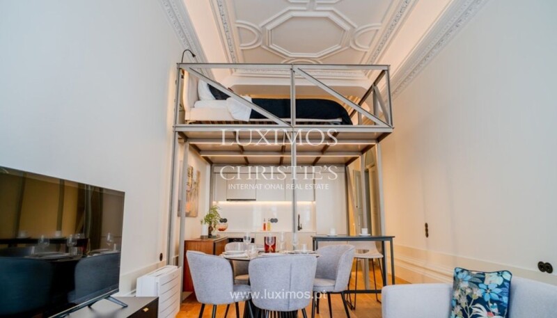 New studio apartment in a historic building, consisting of 11 units and 2 stores, located in the heart of downtown Porto, with unique façades and interiors, in a consolidated area of commerce and services. Rehabilitated in such a way as to maintain the original architectural features, such as original plaster ceilings with motifs and moldings, high ceilings and skirting boards, the bedroom is located on a perfectly integrated mezzanine. With quality finishes, it has air conditioning and a video intercom. Excellent location, between 2 metro stations, just a 1-minute walk from the renovated Mercado do Bolhão and 5 minutes from Avenida dos Aliados. CHARACTERISTICS: Area: 73 m2 | 791 sq ft Bathrooms: 1 Energy efficiency: C FEATURES: mezzanine Mezzanine; Balcony with 2.64 m2. Internationally awarded, LUXIMOS Christie's presents more than 1,200 properties for sale in Portugal, offering an excellent service in real estate brokerage. LUXIMOS Christie's is the exclusive affiliate of Christie´s International Real Estate (1350 offices in 46 countries) for the Algarve, Porto and North of Portugal, and provides its services to homeowners who are selling their properties, and to national and international buyers, who wish to buy real estate in Portugal. Our selection includes modern and contemporary properties, near the sea or by theriver, in Foz do Douro, in Porto, Boavista, Matosinhos, Vilamoura, Tavira, Ria Formosa, Lagos, Almancil, Vale do Lobo, Quinta do Lago, near the golf courses or the marina. LIc AMI 9063.