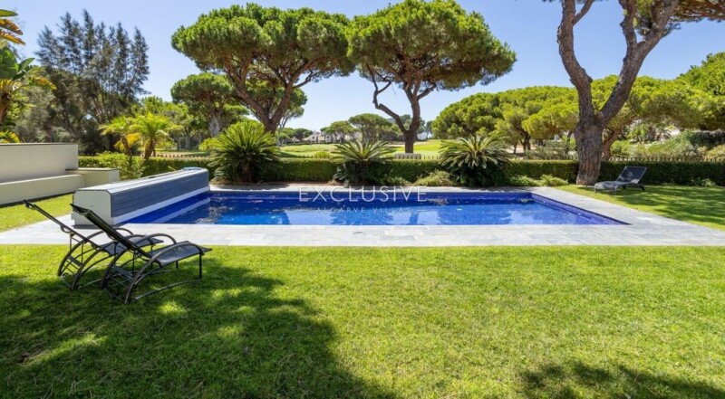 This property is a gem located directly on the golfcouse in Vilamoura. the property built on two levels. on the ground floor, there is an entrance hall, living room, kitchen, utility room, one en-suite bedroom, a separate w/c and an office. The top level has two additional bedrooms sharing one bathroon and the master suite. The property is equipped with double insulated windows with mosquitoe nets, air conditioning throughout, underfloor heating in bathrooms, fireplace, and a modern fully equipped kitchen and utility room. The exterior of this property, is well landscaped and has a covered terrace where you are directly facing the golf course. The salt water swimming pool is heated, and has an electric cover. There is also an outdoor bbq area and outdoor dining area. The villa has electic gates and private parking inside the property. The property is well maintained and has been renovated with modern materials throughout.