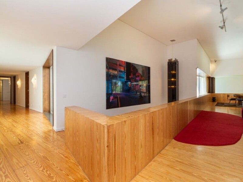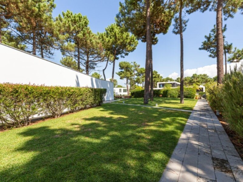 Spectacular 600 m2 villa located in Herdade da Aroeira; 25 km from Lisbon, situated on the south bank of the River Tagus; Set in a vast pine forest and 600 m from the beach - Fonte da Telha and Costa da Caparica; In a preserved area, with golf. The villa is surrounded by large pine trees, a golf course, sandy areas and lakes; around the house and garden, low-lying shrubs. The villa was built on a long, narrow plot of land, slightly triangular with a gentle slope; At the entrance to the gate, one has no idea of the architectural interplay made with the blocks of the house; Access is via a walkway surrounded by low-lying landscaping; The villa, with a modern design, with straight lines, with total privacy, consists of three bodies and two patios, and is supported by metal pillars that suspend and support the house up to the pool; the land ends with a backdrop of pine trees and a golf course; a true dazzler; The first body, at the entrance, is the area used as a garage and service area; The second body, the kitchen and the living rooms that overlap two floors and open onto a stunning landscape of garden and pool; The last body is occupied by the bedrooms; Total privacy, for a life of the countryside and beach; Upon entering the ground floor, we have access to the dining room area, kitchen and 3 suites; on the floor below, another suite and 3 large rooms (which includes the cinema room); The rooms open onto a huge deck and lawn with swimming pool; Gym and sauna; The end of the land borders the golf course; Energy Category: B.
