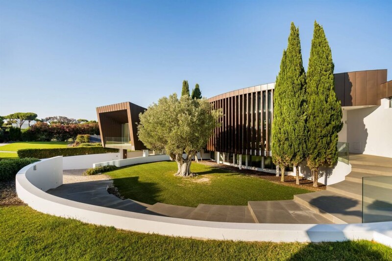 Located in the prestigious urbanization of Pinhal Velho, we find this masterpiece overlooking the Millennium Golf Course in Vilamoura, designed by the renowned Portuguese architect Vasco Vieira! This contemporary retreat features five luxurious suites, displaying an innovative design that is captivating and distinctive. This architectural wonder unfolds in the form of a circle, bearing witness to Vasco Vieira's innovative vision. Upon entering this villa, you are immediately greeted by a sense of grandeur, thanks to the impressive open-plan layout that harmoniously connects the kitchen, dining area, and living room. The large glass windows not only flood the interiors with abundant natural light. Imagine hosting unforgettable gatherings with the lush golf course as your backdrop, where indoor and outdoor spaces blend seamlessly. Each room of this property offers panoramic views of the garden, ensuring a serene start to each day. The master suite, a luxurious retreat in itself, boasts a private balcony, providing a tranquil space to relax and enjoy the peaceful surroundings. In addition to the architectural marvel, this residence is close to the famous Marina de Vilamoura, its restaurants and bars, and beaches, allowing for a perfect blend of luxury and seaside living. Located in Pinhal Velho, a highly sought-after location for its privacy and the size of its plots, this property is a testament to the fusion of contemporary elegance and natural beauty. For discerning buyers, it represents not only a home but an investment in a lifestyle that perfectly combines sophistication, proximity to recreational activities, and the serenity of nature.
