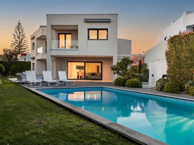 5 Bedroom Villa of Modern Architecture with Swimming Pool in Birre, Cascais We present this magnificent 5 bedroom villa, of modern architecture and with the highest quality finishes, located in a quiet area in Birre, just 7 minutes away from the centre of Cascais and 5 minutes away from the beaches. Inserted in a 780 sqm plot, with a 436 sqm gross construction area, this property stands out for the natural luminosity provided by the excellent sun exposure and its ample divisions, offering a comfortable and sophisticated environment. The villa is distributed over 3 floors as follows: Ground Floor: Entrance hall: 10 sqm Office/bedroom: 11,80 sqm Bathroom of support Living room with access to the garden: 51 sqm Fully equipped kitchen: 26 sqm, open to the living room and with access to the porch area First Floor: Hall: 5 sqm, with access to the following 4 suites: Suite 1, with closet: 26 sqm Suite 2: 14 sqm Suite 3: 18 sqm, with access to a balcony Suite 4: 18 sqm, with access to a balcony Floor -1: Garage for 3 cars Laundry area Storage area The property is ideal for those who are looking for a spacious and bright home, with contemporary finishes and situated in a privileged location, quiet and at the same time close to the centre of Cascais and its beaches. The area also has good access to golf courses, international and national colleges, and various services. Being 30 minutes away from Lisbon and its Airport, this villa offers the perfect combination of comfort, quality of life and proximity to major urban centres. Porta da Frente Christie's is a real estate agency with more than 20 years of experience in the market, specializing in the best properties and developments, both for sale and for rent. The company was selected by the prestigious brand Christie's International Real Estate. Energy Rating: A.