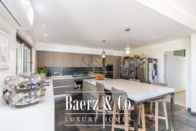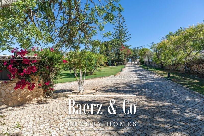 This beautiful Quinta was completely renovated in 2018 with no expense spared, using top quality materials throughout, creating a sophisticated and luxurious home. Set in a great location between Loule and Almancil in a very sought after area the property is incorporated in a large plot, offering a very tranquil living experience with incredible sea views, yet is close to all amenities. Approaching the property down the grand calcada driveway brings you to a large parking area and a double garage. Upon entering the house you are greeted by a spacious open plan living area through the entrance hallway, comprising a lounge with a cosy wood burning stove, a dining area and kitchen, fitted with state of the art appliances, and a utility room. The living area is bathed in natural light and offers direct access to a large south facing terrace. Also on this floor you have three generous bedrooms, each with their own bathroom and each with a private terrace. On the first floor is the grand master suite, comprising a bedroom, a separate dressing room, a superb bathroom and a lounge. This suite has great sea views and also a private terrace. On the lower ground floor there is a complete apartment with two further bedrooms, a bathroom, wine cellar, workshop, games room, and offers direct access to the pool terrace, which has a bathroom and BBQ area. The apartment also has an independent entrance door, making it a great space for guests to stay. The grounds of the property are beautifully designed with many mature specimen trees, and also include a building plot with the possibility to construct another property. This is a rare opportunity to purchase this very unique Quinta, so contact us to arrange for a viewing of this incredible property. This property is presented by Quintas and Casas, voted the best boutique real estate agency in Portugal in 2024.