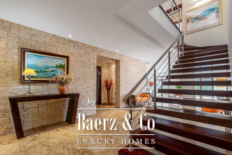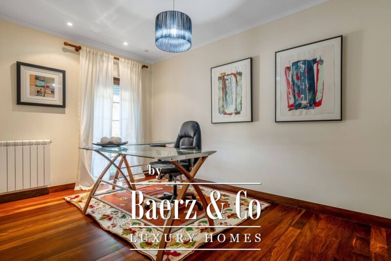 Very well located within Praia d'el Rey Beach & Golf Resort, this fabulous villa with privileged views of the golf course offers the perfect balance between elegance, comfort and tranquillity.Just a 2-minute walk from the Clubhouse, a 10-minute walk from the beach and a few minutes by car from all kinds of shops and services, this villa is perfect for those who value a privileged location, quality of life and comfort.With a plot of 1024 m2 and 480.38m2 of construction area, the villa stands out for the quality of the finishes and the excellent distribution of its spaces.Spread over 2 floors and basement, with plenty of privacy and excellent solar orientation, the villa consists of: Ground Floor: - Elegant entrance hall, very spacious and with a beautiful wooden staircase that gives access to the upper floor- Private office.- Social bathroom- A bedroom en suite with a good wardrobe and bathroom with window, shower and bathtub, ideal for receiving guests.- Generously sized equipped kitchen with 2 islands, with pantry, laundry room and direct access to the basement and garden. - Elegant dining room- Spacious and welcoming living room integrated with the dining room and kitchen, perfect for enjoying the family and receiving guests, with a stone fireplace and stove and large glass windows that let in abundant light.Upper Floor:- A generous bedroom hall that gives access to a pleasant terrace with sun in the morning.- Two large bedrooms with good wardrobes and sharing the same bathroom complete with shower and a window. One of the bedrooms also has a spacious private terrace with plenty of light.- Master bedroom, spacious and bright with electric fireplace, a walking closet, a generous full bathroom with shower, whirlpool bathtub and window and also a pleasant and sunny terrace, very spacious, where you can enjoy the view of the golf course, the sea and the sunset.Basement, with access from the inside and outside:- Large, multipurpose room, ideal to be used as a cinema room, games room or gym.- Bathroom with shower- A generous wine cellar and tasting room, perfect for true wine connoisseurs- Garage with space for several cars and storage.Exterior:- Barbecue area, covered to be used all year round. - Inviting dining area, covered and with a stone table where you can enjoy your meals outdoors.- Quiet garden, well kept and with several spaces, perfect for leisure time- Generous saltwater pool ideal for cooling off and sunbathing- An inviting porch, with direct access to the entire social area of the house, where you can enjoy the view, the singing of birds and the sunset.- Underground room for machines and storage - Bathroom with shower to support the pool- Covered parking area Details:- Natural oak wood flooring in the private area and in the social area of the house- Natural stone floors from Molianos in the lobby and some bathrooms- Air conditioning for heat and cold- Diesel central heating- Central vacuum- Electric shutters- Radio and background music, private for each room of the house- Water hole in the garden- Excellent sun exposurePraia D'el Rey Beach & Golf Resort is a recognised 5-star seaside resort, with a hotel, several restaurants, a beautiful 18-hole golf course, tennis club, children's playground, grocery store, among others.The beautiful beach is well known by the world's biggest surfers and about 10 minutes by car is the Óbidos Lagoon, perfect for nature lovers and numerous sports.The property is about 25 minutes from Caldas da Rainha and less than 1 hour from Lisbon.This is Paradise, come and see it!.