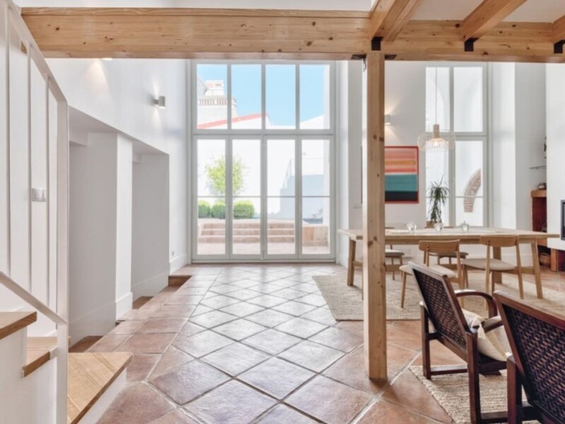 Elegance and Authenticity in Alentejo. In the historic center of Montemor-o-Novo, this house blends the charm of traditional architecture with modern comfort. The perfect choice for those seeking a new home, a second residence, or weekend getaways, just an hour away from Lisbon. The property is in excellent condition. Completely renovated in 2023 by an architect, preserves original elements while incorporating new materials and high-quality finishes. The spacious and bright interiors create a welcoming atmosphere, with natural tiles and solid wood flooring. The living room, with a fireplace and double-height ceiling, connects harmoniously to a mezzanine and the modern, fully equipped kitchen. On the first floor, the three en-suite bedrooms, each with over 20 sqm, a private bathroom, and built-in wardrobes. The exterior space is generous and inviting. The patio, with regional plants, includes a dining area, lounge area, and a semi-covered saltwater pool, adorned with a traditional lioz stone fountain. From the terrace, enjoy a panoramic view of the historic center and the Castle. The house is equipped with underfloor heating, a heat pump, and A+++ energy-efficient appliances, ensuring comfort and efficiency. The facade insulation, new roof, solid wood windows with double glazing, and central heating enhance the cozy feel. For added convenience, the property includes a garage with direct access from the hall or kitchen, a storage room with the possibility of installing an elevator, and an attic for additional storage. This is the opportunity to experience the best of Alentejo. Schedule your viewing. Energy Rating: B.