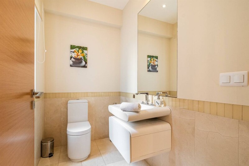 Fantastic 4-bedroom house located in the closed condominium "Palheiro Village" with a privileged view of Funchal Bay. This house is spread over four floors with access by stairs and an elevator. On the entrance floor, near the condominium road, there is a closed garage for two cars and an imposing entrance hall where the elevator and stairs provide access to the lower floors. On the ground floor, there is a huge living room with a fireplace, a kitchen, and a support bathroom. On this floor, there is also a bedroom with a private bathroom and access to an exterior terrace, which in turn has access to a balcony along the entire south side, where you can admire the sea view and Funchal Bay. On the floor below, you will find the bedroom floor, where three spacious suites with great brightness and quality finishes have access to another large balcony shared by the three bedrooms, allowing you to enjoy the panoramic views that characterize this house. On the second lower floor, there is the leisure area where you can enjoy an infinity pool, a bar and gym area, with landscaped areas, creating a unique environment.