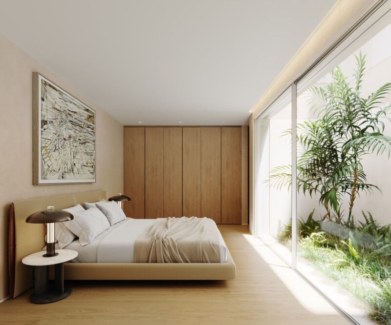 Located in Cascais, minutes from the center of Lisbon, the Plátanos development is a condominium of independent villas that combines nature and sophistication, elegance and a remarkable lifestyle. Located in comforting surroundings, Plátanos is a project of reference in its quality, a treasure in the care of nature. The entrance is on the top floor, where there are two suites and a master suite. The master suite is located at the end of the corridor and is marked by the natural light and vegetation of the second patio. Going down to the ground floor, the kitchen, dining room and living room alternate in symbiosis with the interior gardens, allowing for an exceptional relationship with the outdoors and nature. The living room, which opens onto the garden, is framed by the swimming pool. On the lower floor, there is a semi-underground room opening onto the first patio of the house, which could be adapted into a suite or games room. The private outdoor area of the Type A villas ranges from 243 m2 to over 350 m2 and includes a garden, terrace and swimming pool.