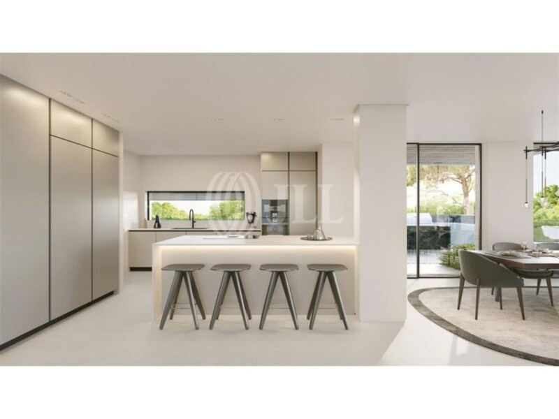 5 Bedroom villa, new, with 694 sqm (gross floor area), 2 parking spaces, garden, balconies and a rooftop with a private swimming pool, in One Green Way, in Quinta do Lago. The One Green Way Development is a new project located in Quinta do Lago, offering privacy and exclusivity worthy of a resort. With spectacular views overlooking the golf course to the north, this gated community has 89 contemporary residences, of which 27 are villas and 62 apartments, spread over three different types: Horizon Residences (4 to 6-bedroom), Panorama Residences (3 and 4-bedroom) and Garden Residences (3 and 4-bedroom). One Green Way invites you to enjoy the many services and amenities offered by Quinta do Lago, as well as the next generation leisure and sports facilities. Each property was carefully designed to offer the best lifestyle, with excellent indoor spaces and outdoor gardens specifically created to provide unrivalled privacy and wellbeing. The residences are distinguished by their elegant design, with the mark of a highly reputed architecture atelier, and by the choice of mature and colourful Mediterranean vegetation. The interior design specialists carefully selected all the details so as to convey a feeling of a relaxed lifestyle, for stronger connectivity, functionality and peacefulness. The resort invites moments of sharing among its residents, always respecting each one's personal and private space, offering a large selection of amenities and services that enables them to work, engage in physical exercise or simply relax. The equipped gym, golf simulator, spa with sauna, beauty parlour and communal swimming pool are just some of the amenities offered by Green Way. There is also a next generation business centre, clubhouse, restaurant, rooftop bar lounge, another lounge for residents, a reception, concierge, shop, outdoor running and fitness track, padel courts, and a children's playground. With a prime location, One Green Way provides easy access to the region's best golf courses, as well as a selection of stunning beaches and the vibrant shopping area of the centre of Almancil. Merely 20-minute driving distance from Faro International Airport, Quinta do Lago has easy access to the main regional road network, enabling easy driving to anywhere in the Algarve or other municipalities of the region. One Green Way is the perfect place to enjoy a comfortable and unforgettable stay at Quinta do Lago. Energy Rating: A.