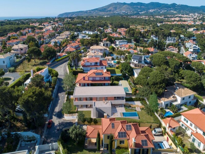 Contemporary villa with lots of natural light, with 625 sqm of construction on a plot of 1,210 sqm, distributed over 3 floors, consisting of six suites, one master (40 sqm) with walk-in closet, two rooms that add up to 77 sqm, large kitchen very well equipped, eight bathrooms, swimming pool, sauna, garden and terraces (with 208 sqm), as well as laundry, cellar, storage room and garage.On the ground floor we will have two suites with dressing room and access to the garden, a living room with 44 sqm and a dining room with 33 sqm, with glass shutters opening to the terrace and the garden, kitchen with 32 sqm fully equipped, also with access to the outdoor area.On the 1st floor we will have four large suites, including the master, all with dressing room, with a good circulation area between the rooms and access to the terrace.On the lower floor we will have the garage with 54 sqm, circulation area with 16 sqm, a multipurpose room, storage room, cellar, sauna, laundry and a toilet.Very high level finishes, ducted air conditioning system, solar panels with solar-thermal technology and underfloor heating throughout the house.Estimated completion of works: February/2025.Located in Birre, in a quiet area to live, less than 10 minutes from the historic center, the beaches, the Marina and the Cascais train station. Close to good international schools in Cascais, golf courses, Guincho Beach and Estoril Casino. Easy access to the A5 highway that connects Cascais to Lisbon in 30 minutes. The villa is 20 minutes away from Sintra and Cabo da Roca, and 30 minutes away from Lisbon (car or train).