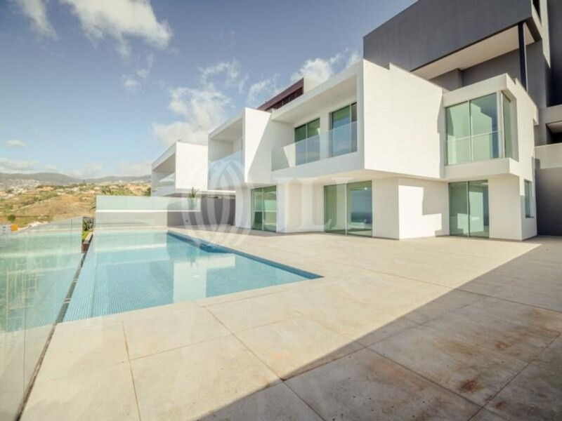 4 bedroom villa, with a total construction area of 329 sqm and located in Sao Martinho, Funchal, Madeira. The villa is spread over four floors with an elevator serving all levels. It features a spacious living room with 41 sqm, an office, a fully equipped kitchen, a dining room with 27 sqm, and a guest bathroom. There are four bedrooms, two of which are en-suite. The main suite, with 22 sqm, includes a closet and a balcony. All bedrooms offer sea views, fitted wardrobes, and air conditioning. The outdoor area accessible from the living room features floor-to-ceiling sliding windows and includes an infinity pool surrounded by a garden. The villa also comes with a garage for six parking spaces. The villa is located next to the Private Hospital of Madeira, a 2-minute drive from Estrada Monumental, and 10 minutes away from Funchal Marina, schools, leisure facilities, tennis courts, shops, and restaurants. It is a 15-minute drive from Palheiro Golf and 20 minutes from Madeira International Airport. Energy Rating: B.